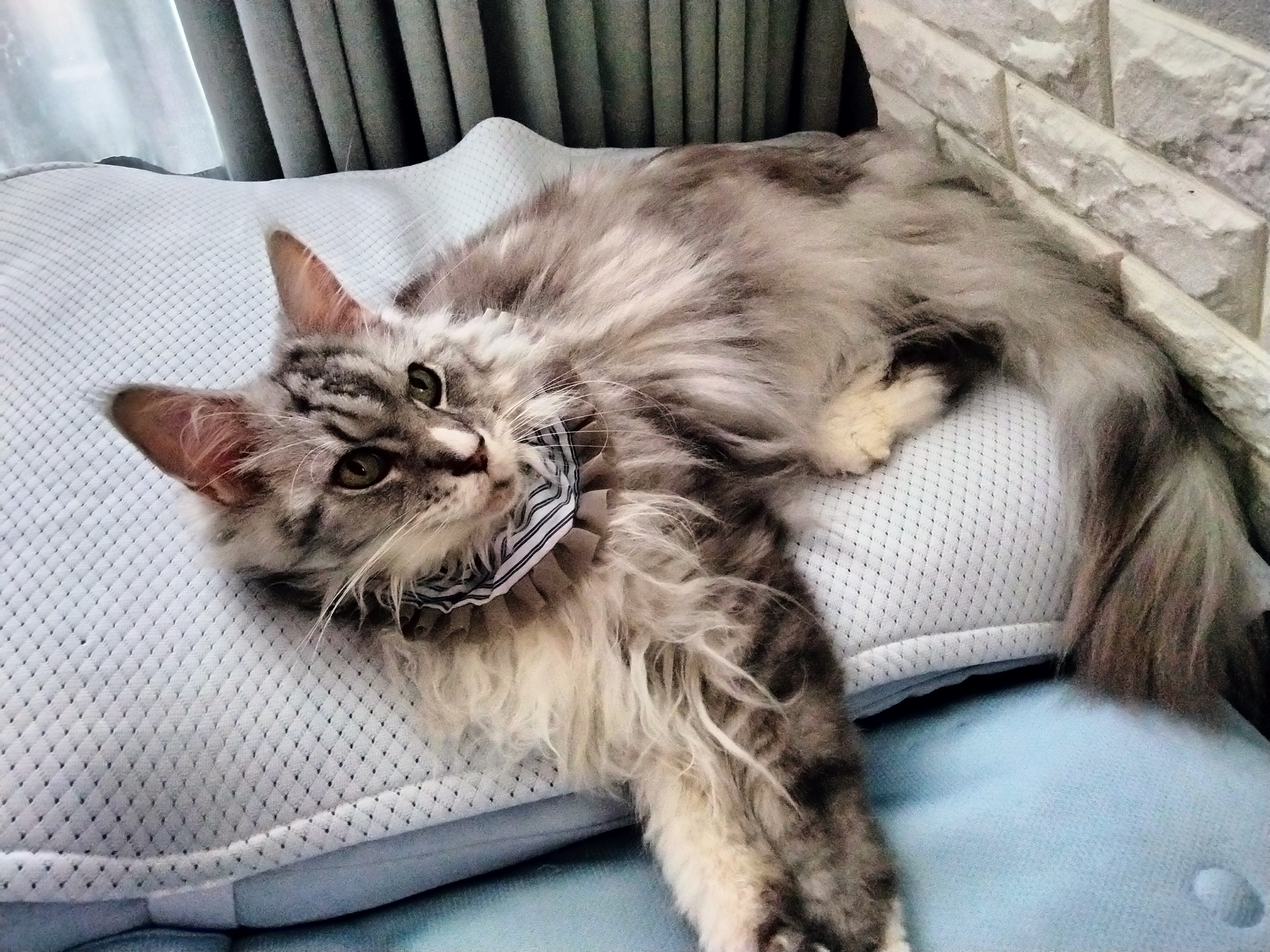 最初は、床などに寝て、なかなかこのカウチに乗ってくれなかったので、失敗したかな?と心配しました。しかし、2日目に試しに抱いて乗せてあげると、目を閉じてそのまま寝ていました。