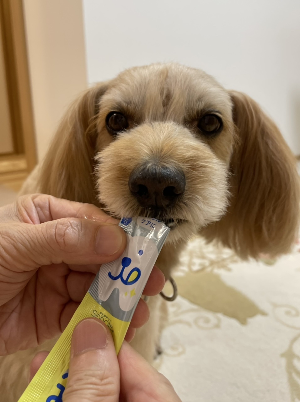 これ、なに味? おいし〜い! と、ワンコが申しております。