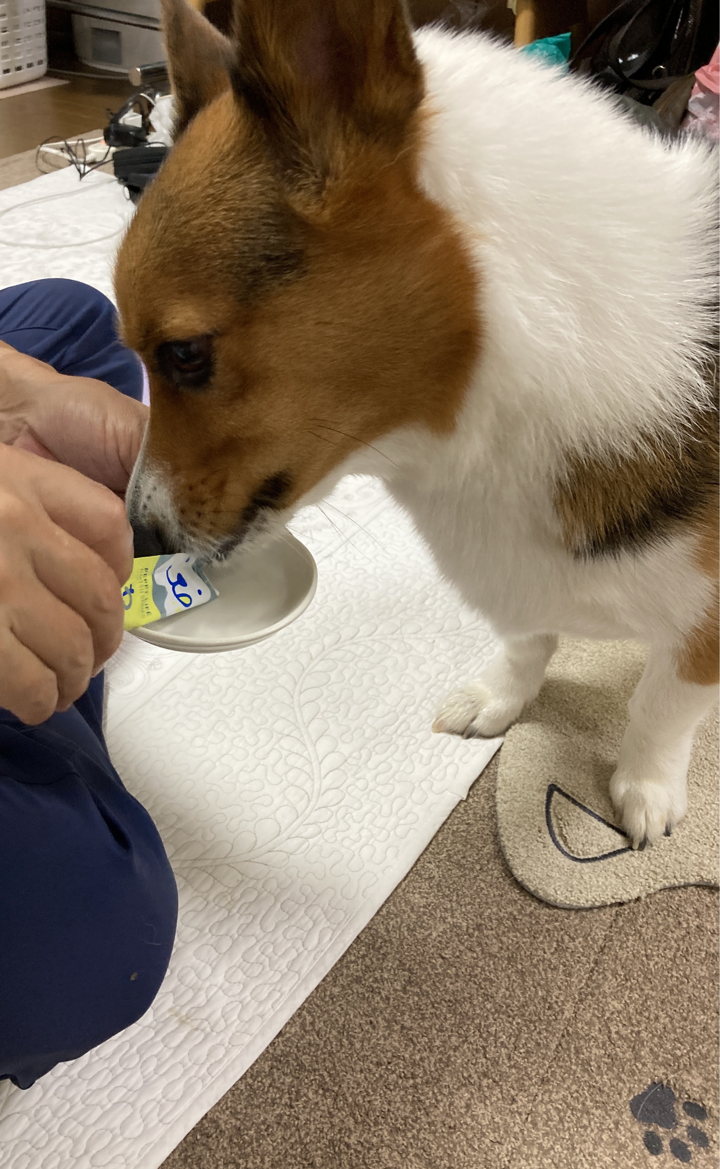 食後すぐに歯磨きをして終わってからごほうびにあげています。歯磨きの途中で逃げそうなハリーに見せて終わったらごほうびあるよーって誘うと気になるところも磨けるしハリーはおいしいから楽しみで助かります。