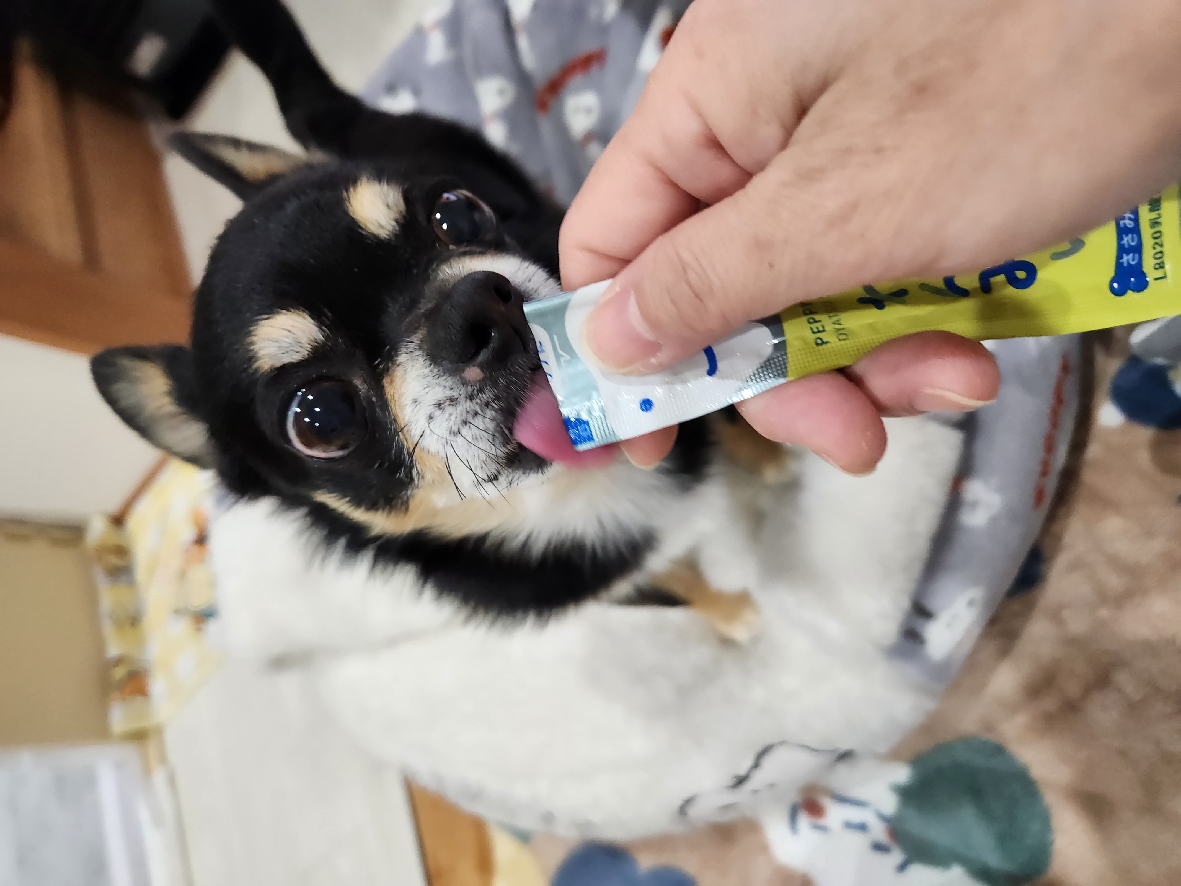 大好物のわんみぃL8020を食べる時は愛犬の目の輝きが違います。安心素材でオーラルケアができ、水分補給もできるのでストックは欠かせません。