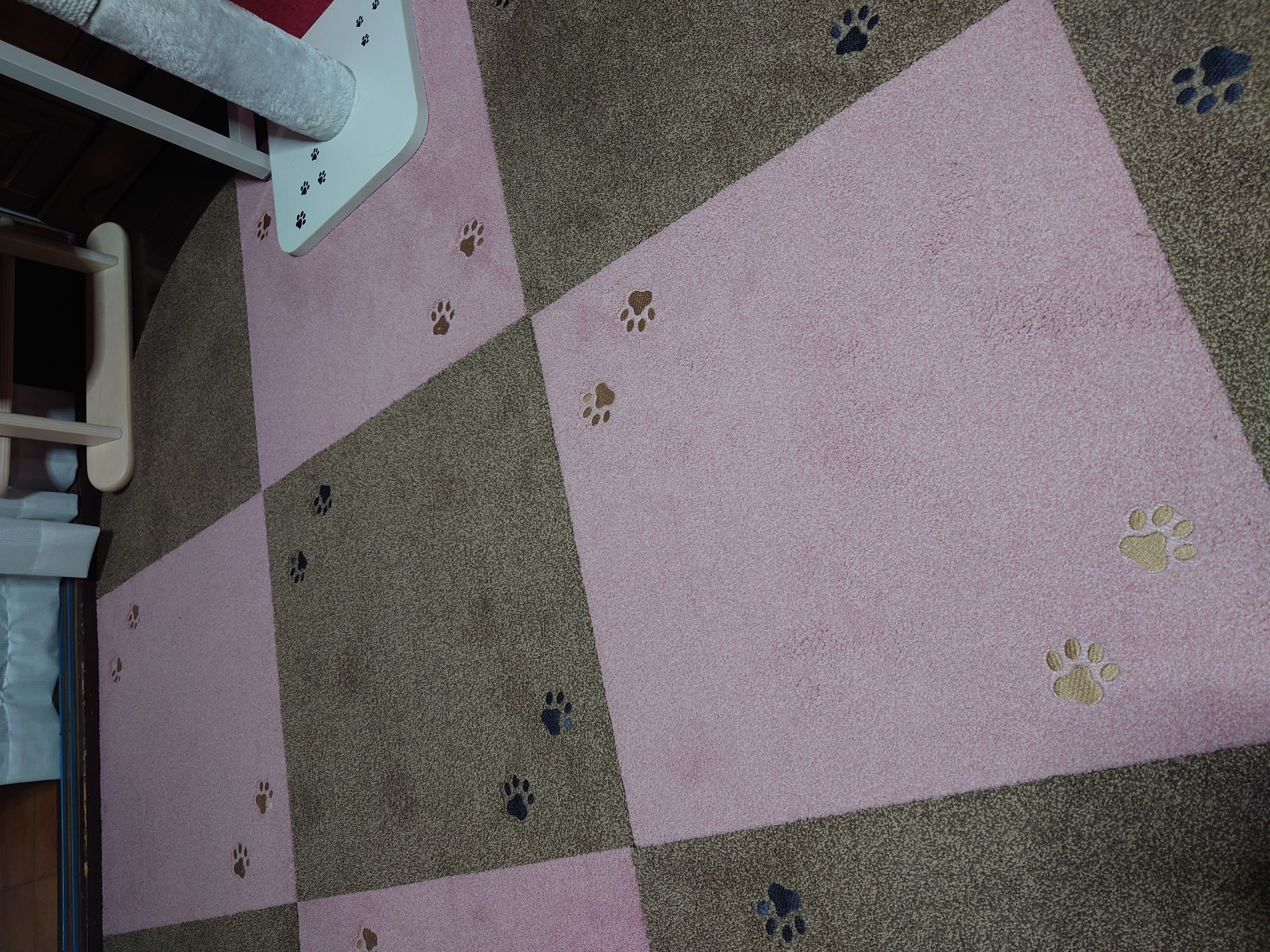 暗い色味だったらどうしよう?って不安になりながら敷き詰めると絶妙な色味と肉球でむしろお部屋が可愛くなりました!!