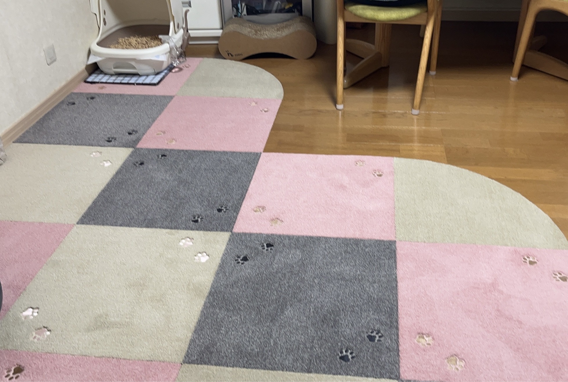 ダイニングテーブルにかかるところはラグをひかないようにしてみました。