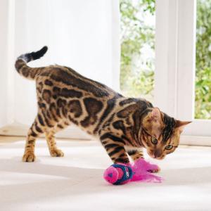 音のなるおもちゃは初めてで、最初は興味津々でしたが音に慣れてくると見向きもしなくなりました。何時間か経って音を鳴らしてみると、また少し遊び始めました。それの繰り返し。やっぱりリアルな鳥やネズミのおもちゃには劣るようです。