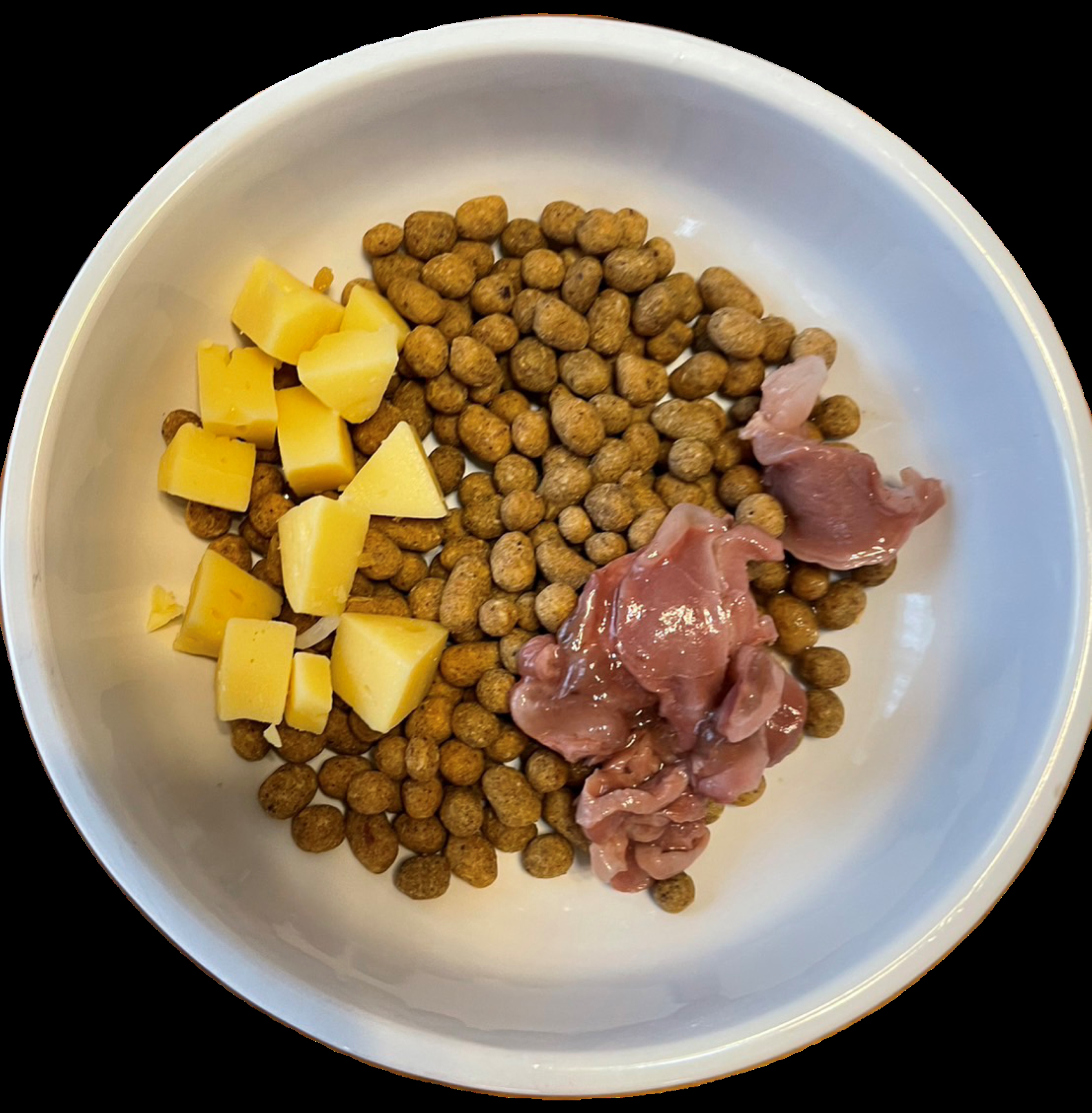 アレルギーのある子なので食べ物には気を使います。フードは腸内バイオームをたべさせています。ドットワンシリーズは安心してあげられます。砂肝は処理が面倒なのでパウチで柔らかく簡単に出せるので助かります。レンチンしたささみと温めたこちらの商品を混ぜてあげてます。よろこびますよ!