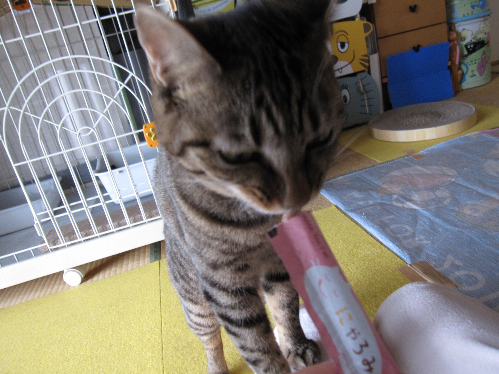 切り口が広めでとてもとろとろなので、たれるのではと思いましたが、いらぬ心配でこぼすことなく上手になめて完食してくれました。膝の上に前足を乗せてなめるのですが完食後ももう少し食べたいと降りずに諦められないでいました。どの味も好きです。