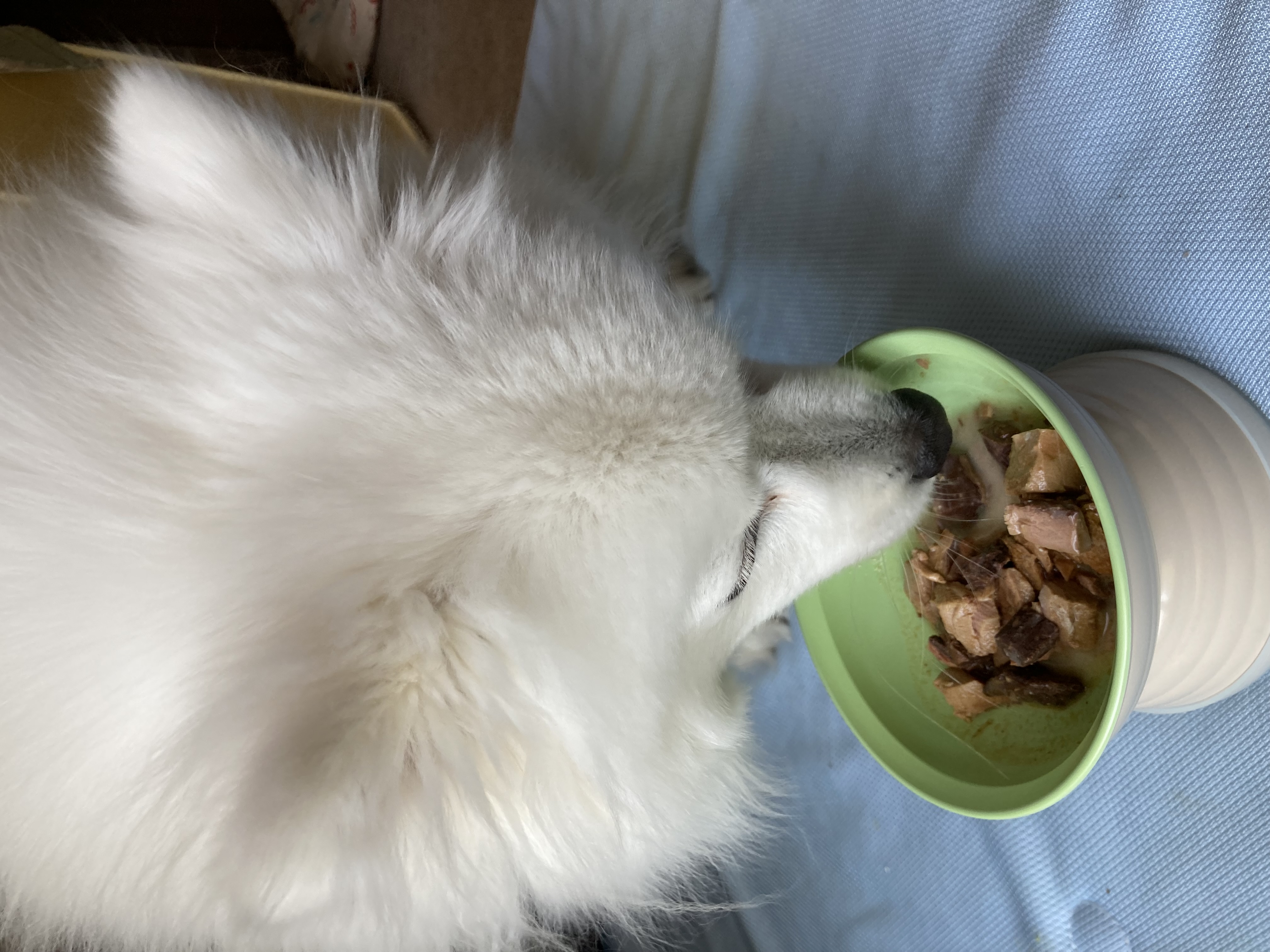 マグロ身がゴロゴロ入っていて、食べ応えがあります。パックを開け出すと、近くに来てお座りして待っています。ドライフードのご飯とは別に、おやつタイムに食べてます〜この時間が楽しみなんだよね♪