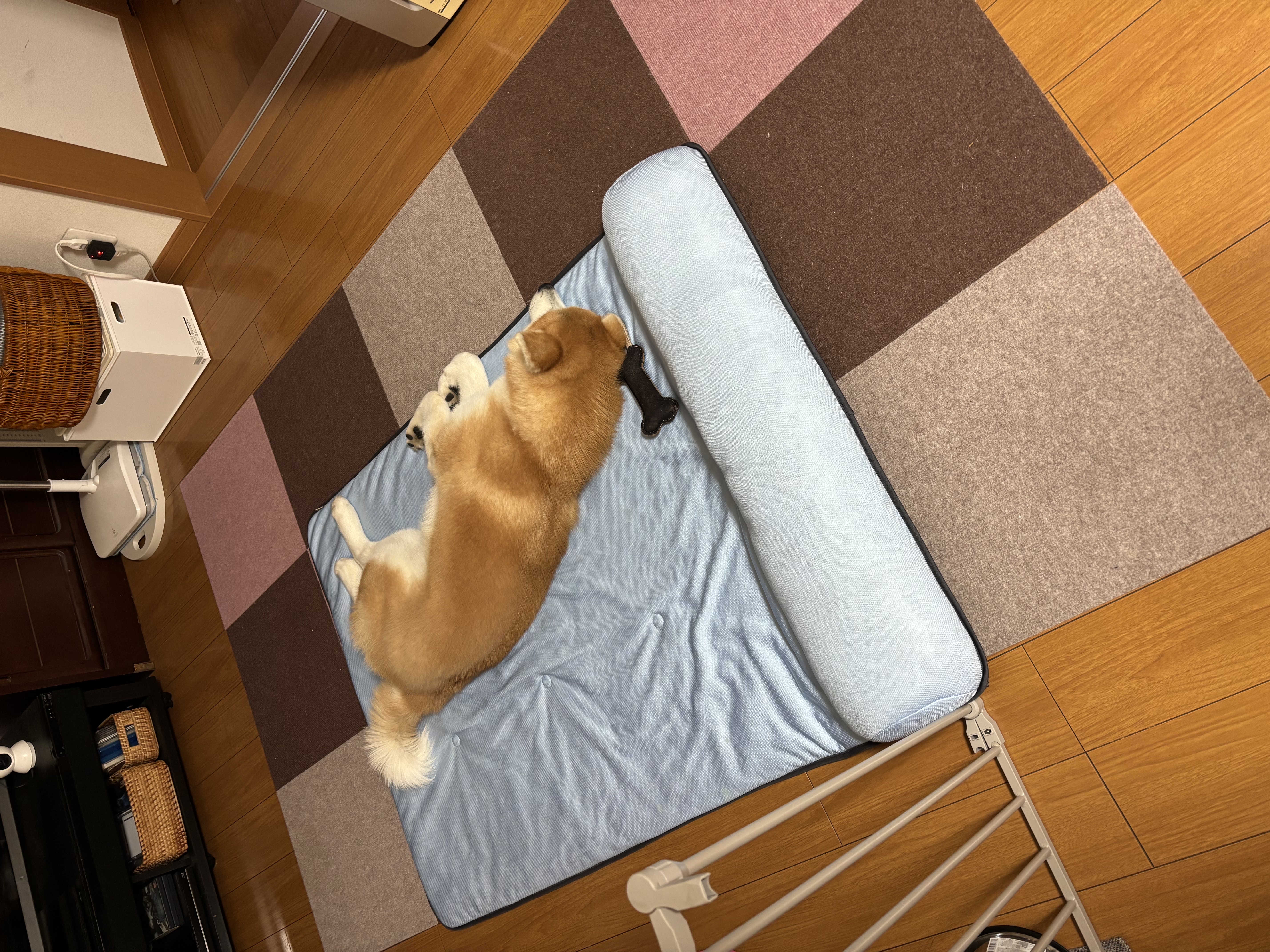 今ではおやつを食べるときもクールマットの上で食べてます。