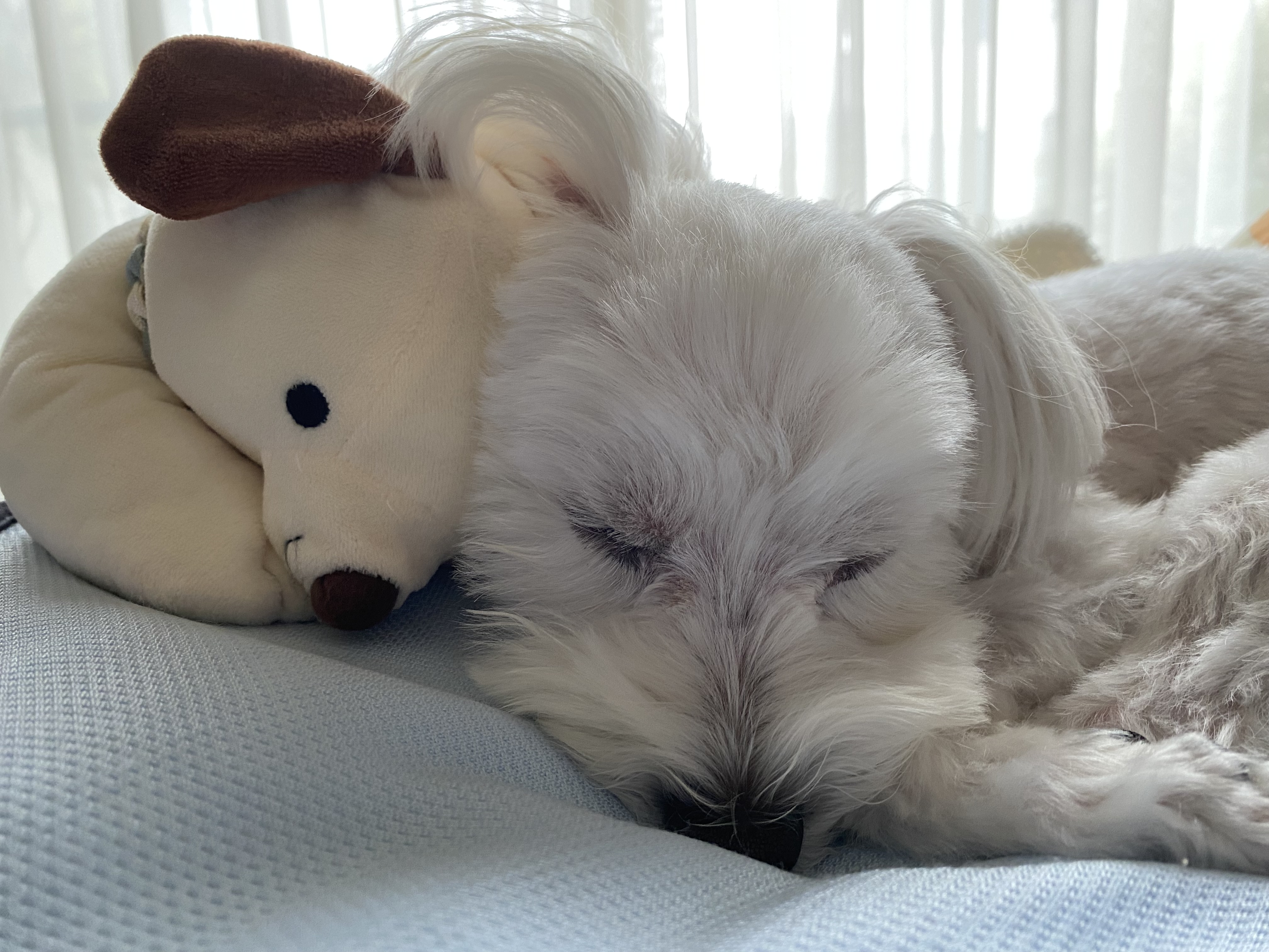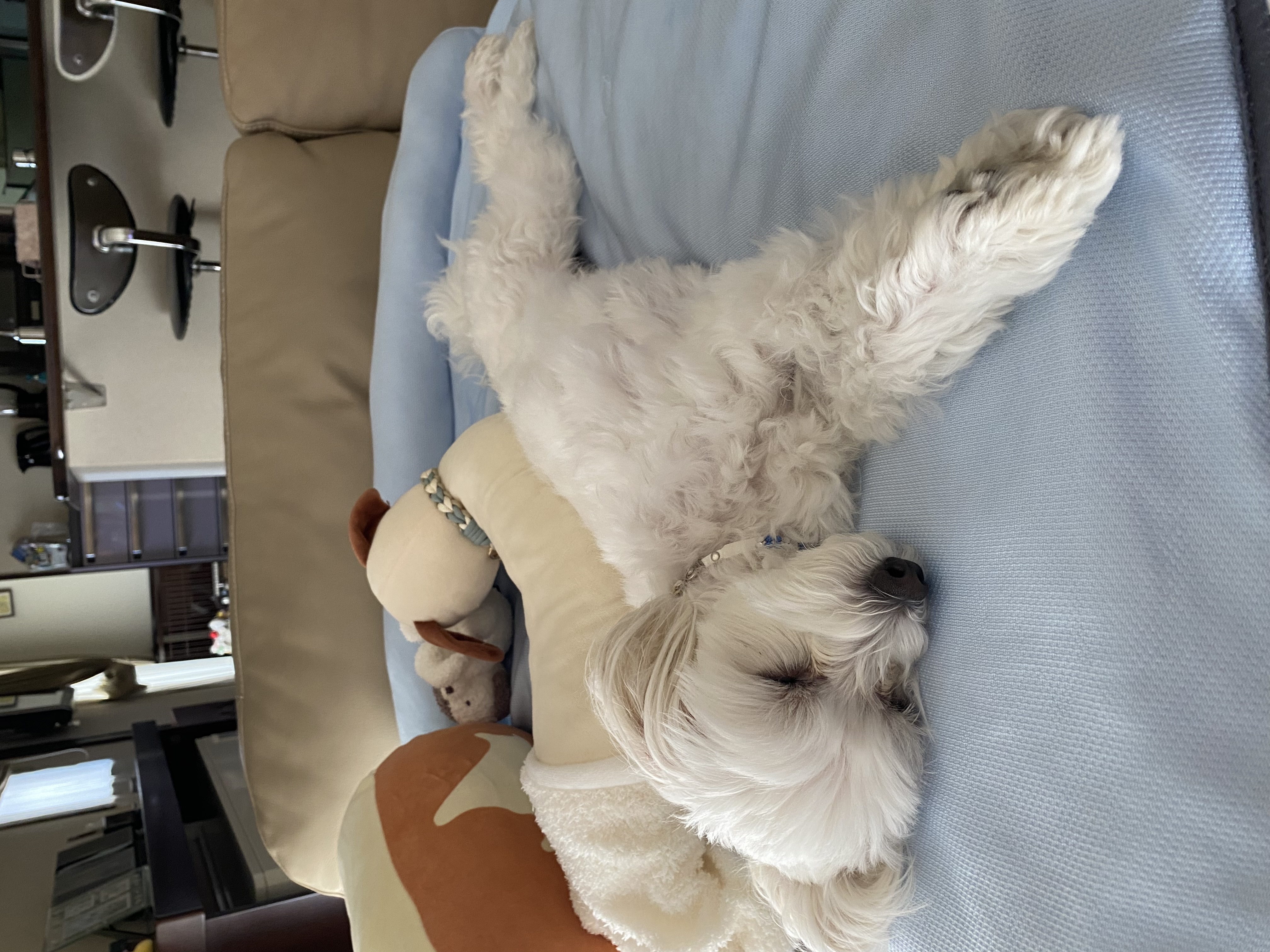 小型犬のマルチーズですが、日中リビングでのびのびとするのが好きなので大きめのLサイズを愛用しています♡