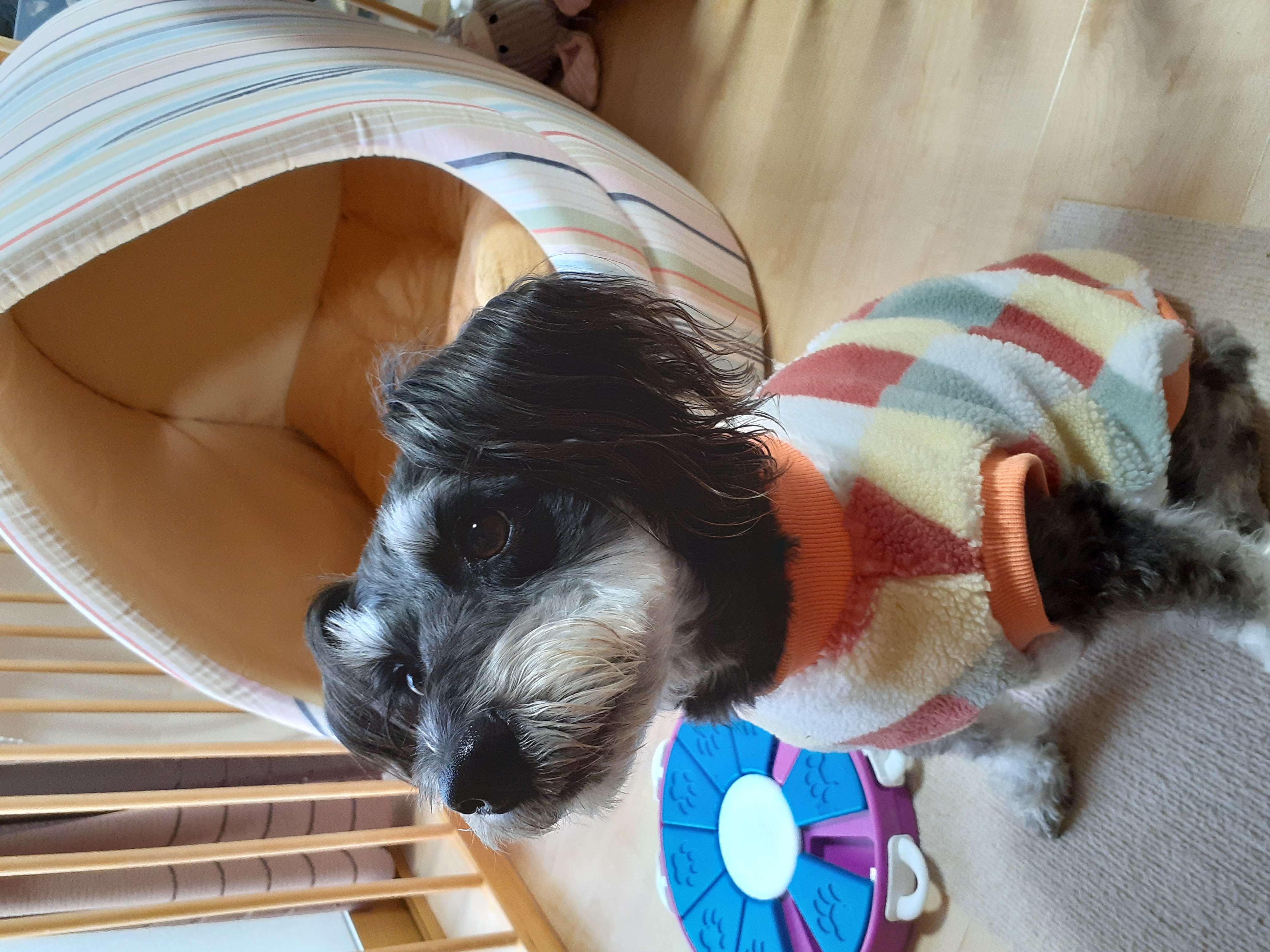 お腹こわしたので、寒さに備えて暖かいの新調しました。 丈が長いので、寝るときのパジャマに使っていますが、 暖かいらしくまったり寝ています。