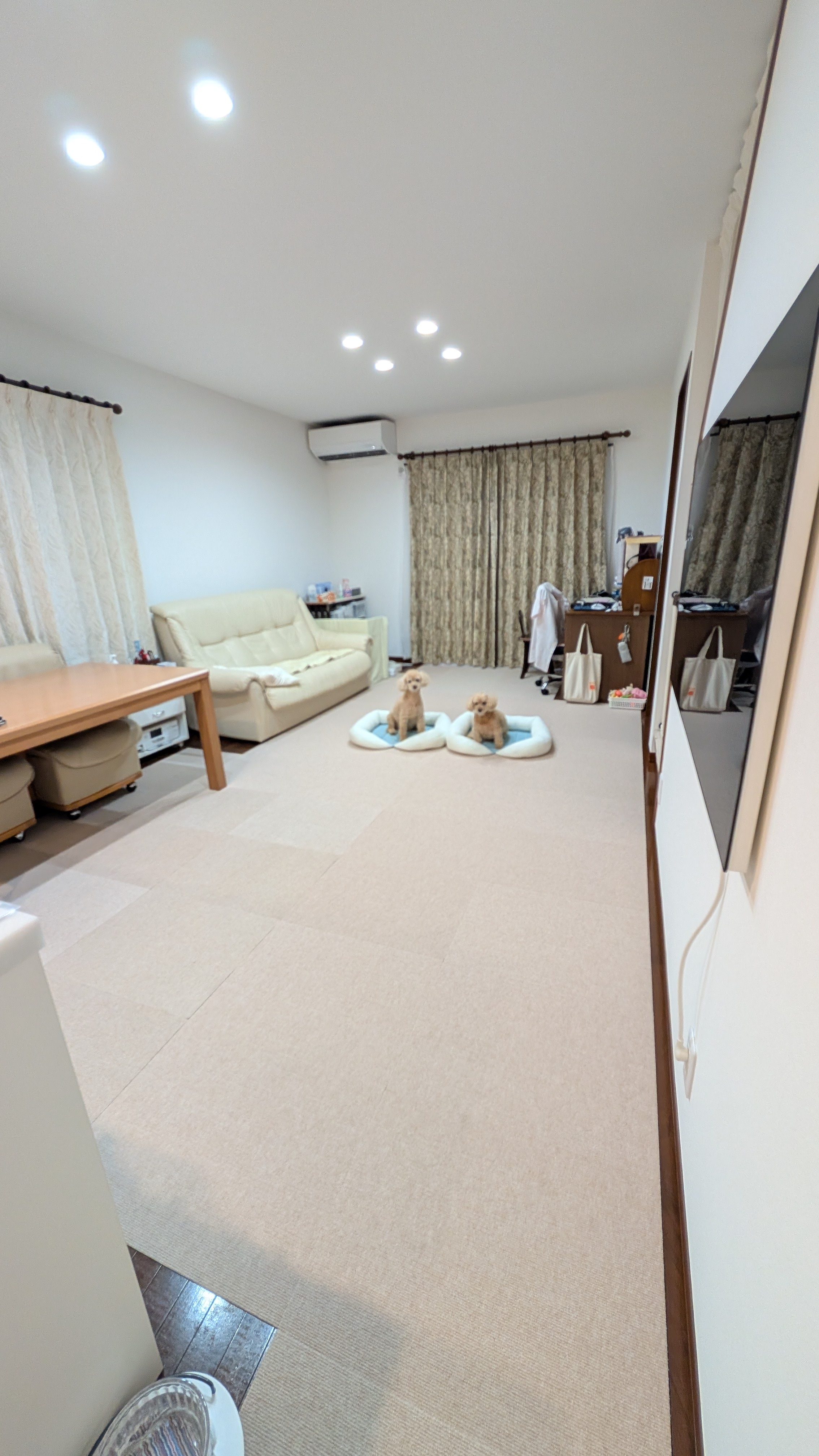 部屋中敷き詰めています。高齢犬と元気な柴の2匹。安心して過ごさせることができます。