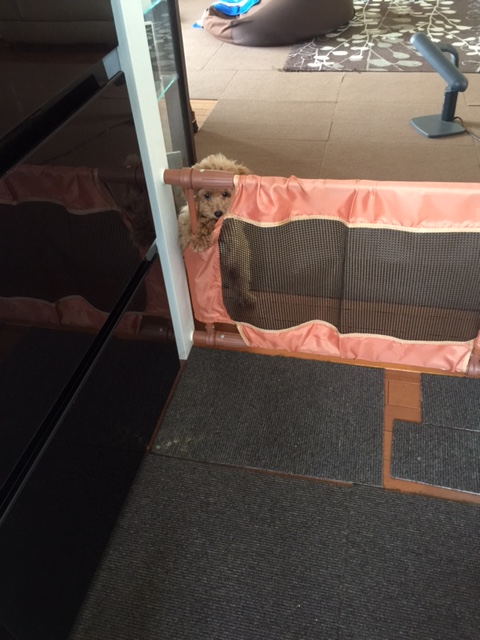 台所に入らないように、設置しました。 大型犬なので、飛び越えたり壊されるかとおもいましたが、 フェンスの外でいい子に待っていると、美味しいものがもらえる と思っているようで、嚙んだり、壊したり、飛び越えることは ありません。 安心して、料理もできます。