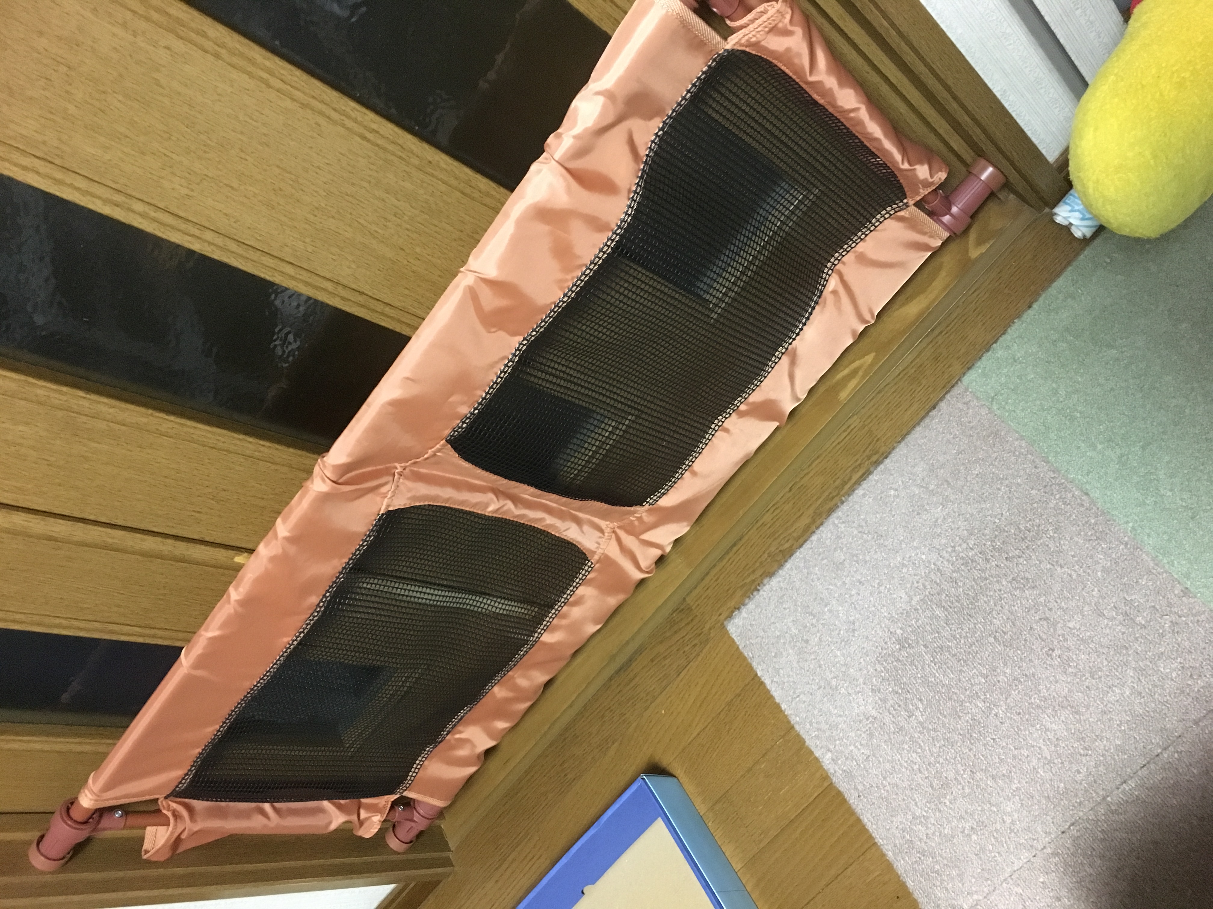 超小型犬なので飛び越えることも無く、ぶつかっても簡単に倒れる事もありません。 しかし、愛犬が下側の突っ張り棒とナイロン部分の隙間からくぐり抜けているのを発見しました…(超小型犬ゆえに?笑) なので、結束バンドとメッシュの布で穴を塞いでます。笑