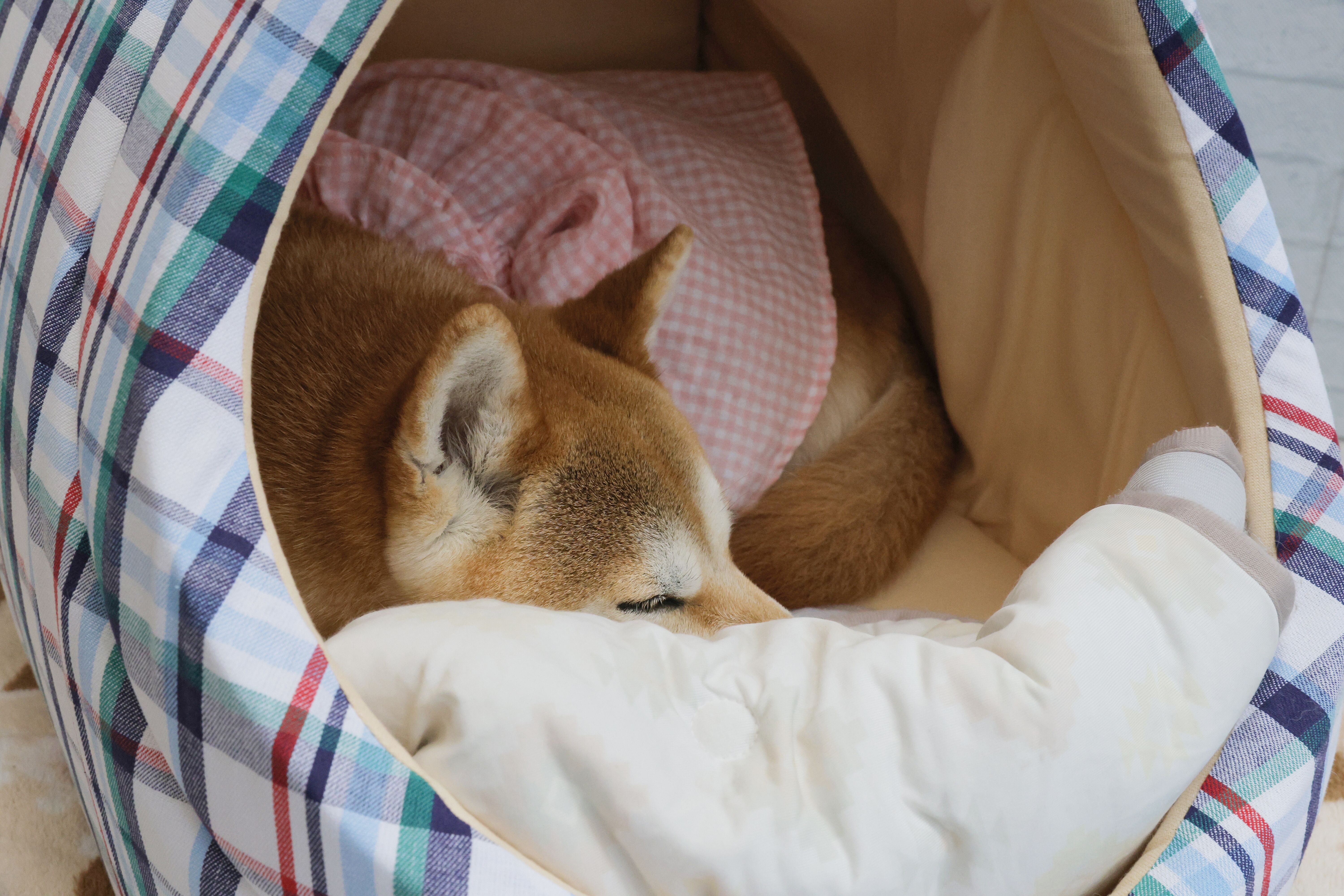 ただ、7.8kgの柴犬には少し大きいかなという感じでした。でも足を伸ばして寝られます。高さもあるので、座っても窮屈ではありません