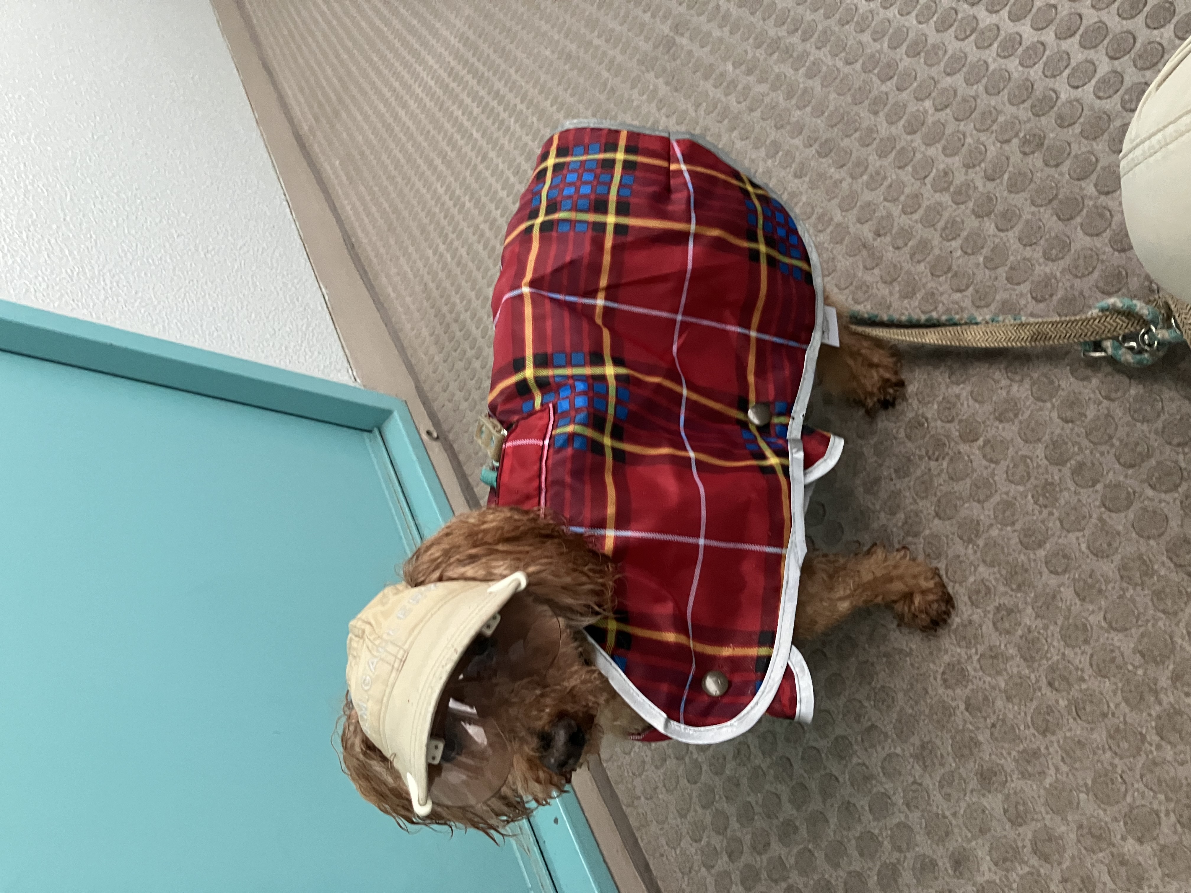 雨でも行きたいお外に、レッドチェックを購入。着せやすく、濡れていても脱がせやすいく、お腹が濡れなない。、リードホールがあるのもいいですね。