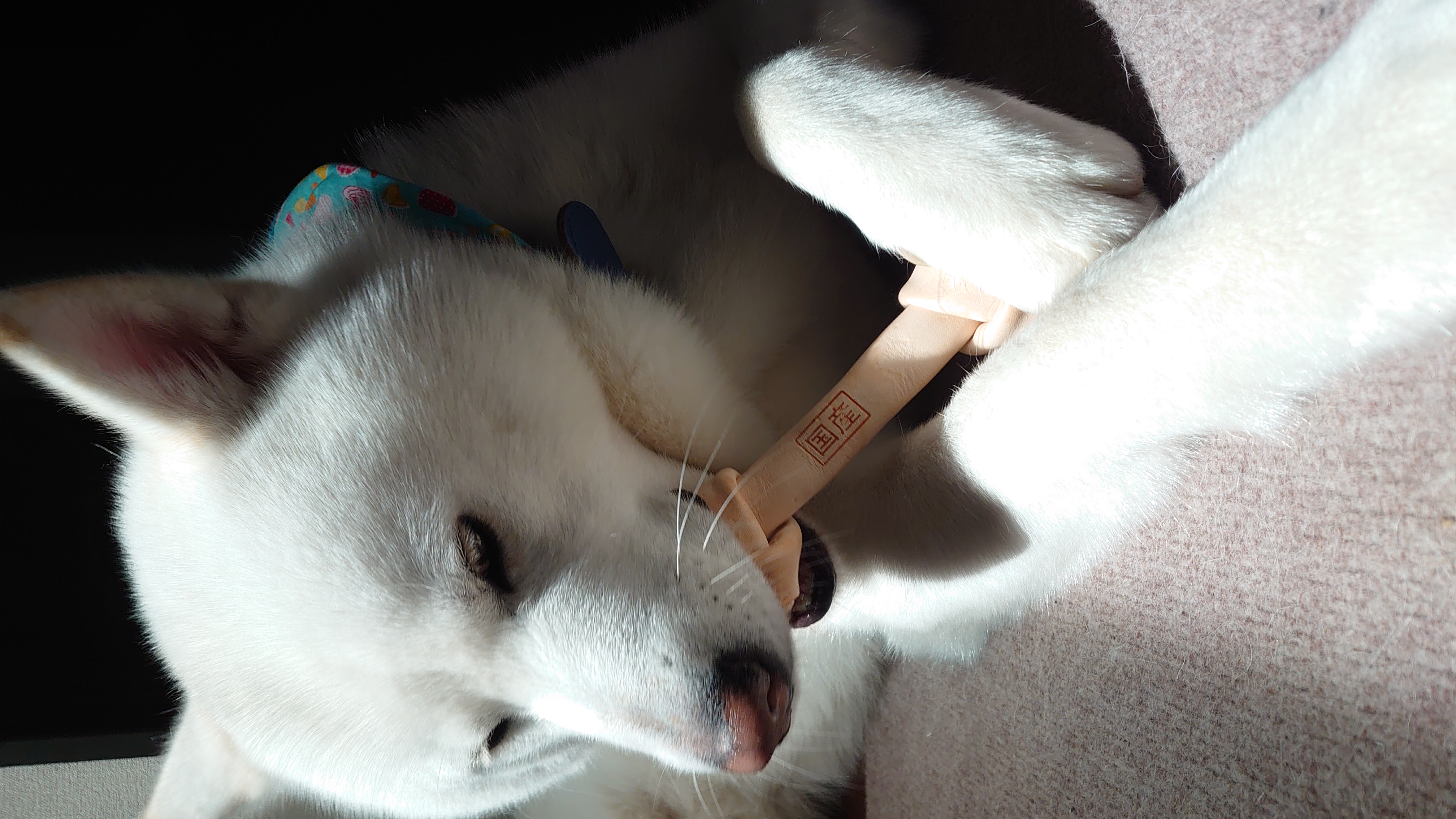 今まで牛皮ガムをあげていたけど、長く持たなかったので初めて購入 キュムキュム言いながら嬉しそうに噛んでます あとは長持ちしてくれるかだけです