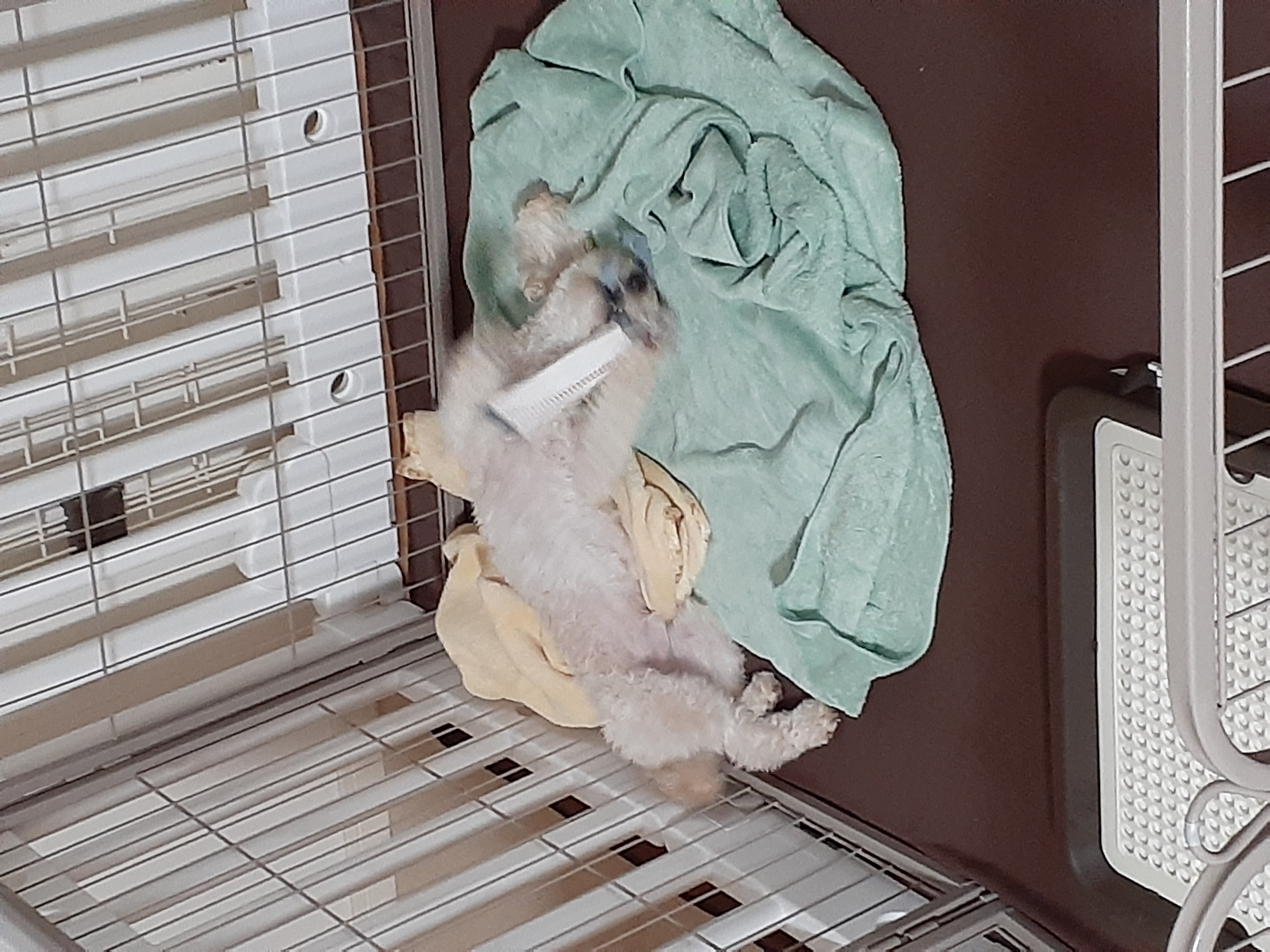 初めは警戒してあまり興味を持ってくれませんでしたが、今ではすっかり慣れて自分で器用に持ちながら必死に噛んで遊んでます^^ 持つのに疲れてきたら「持って~」と咥えて膝に乗ってくるのが堪らなく可愛いです♪