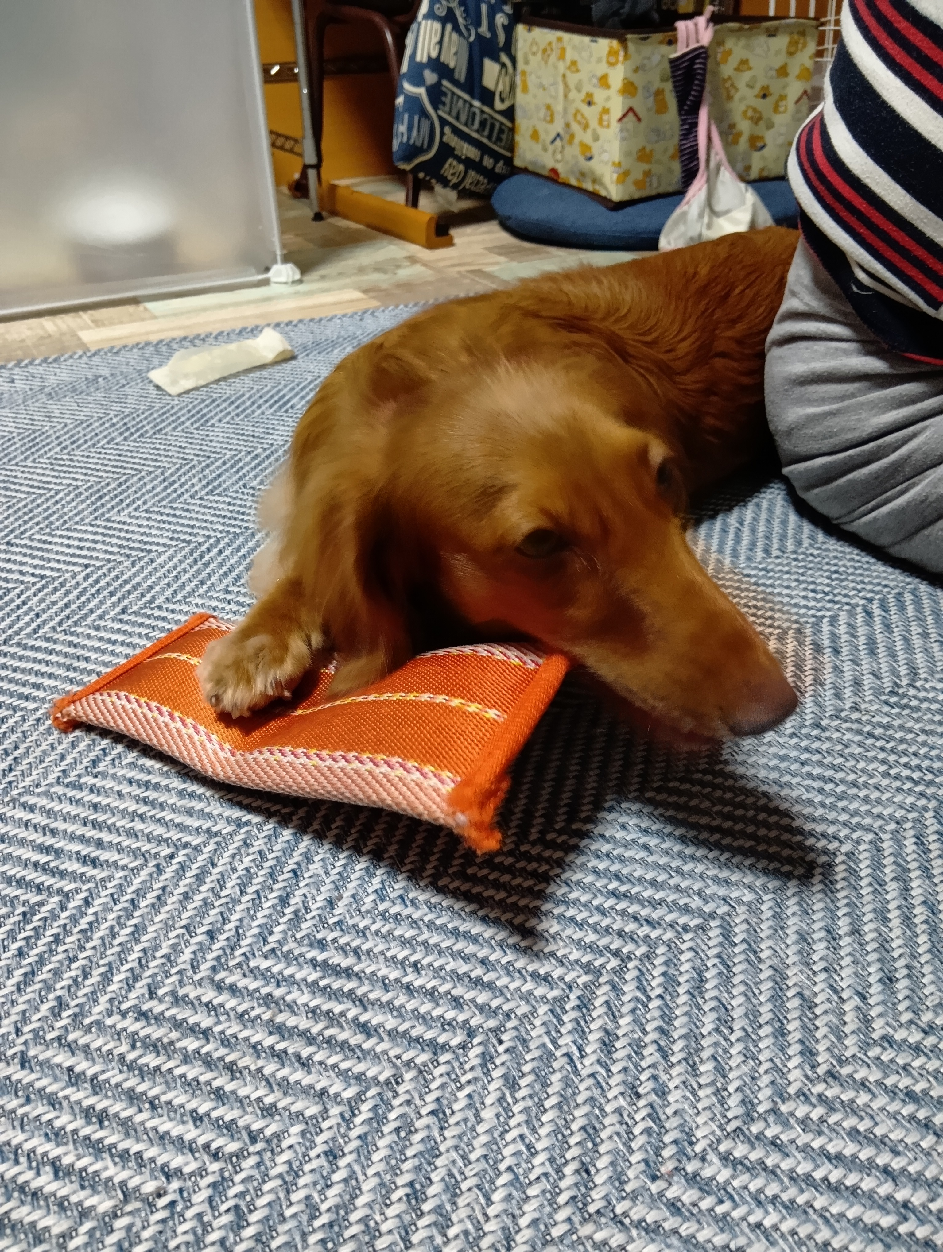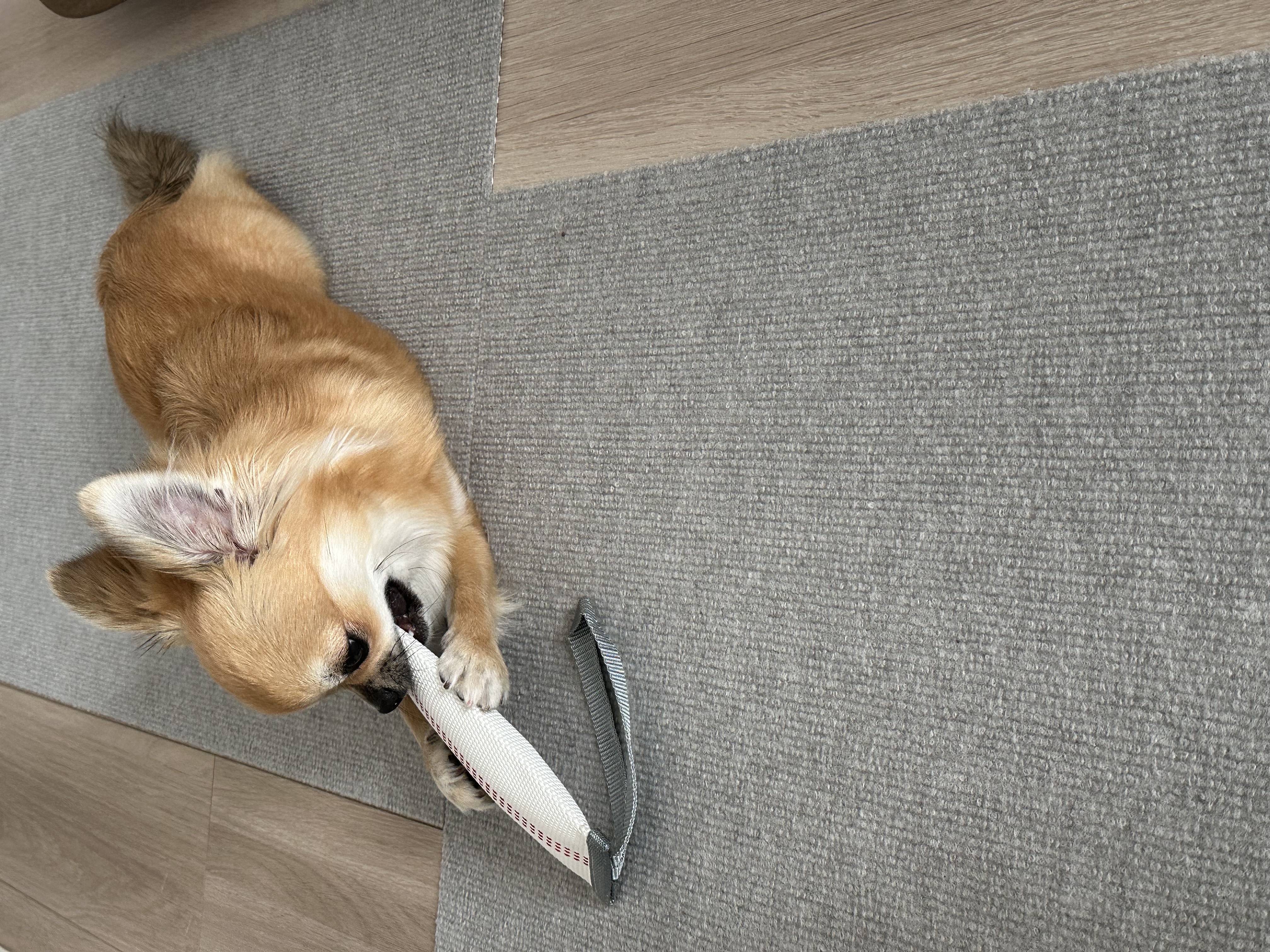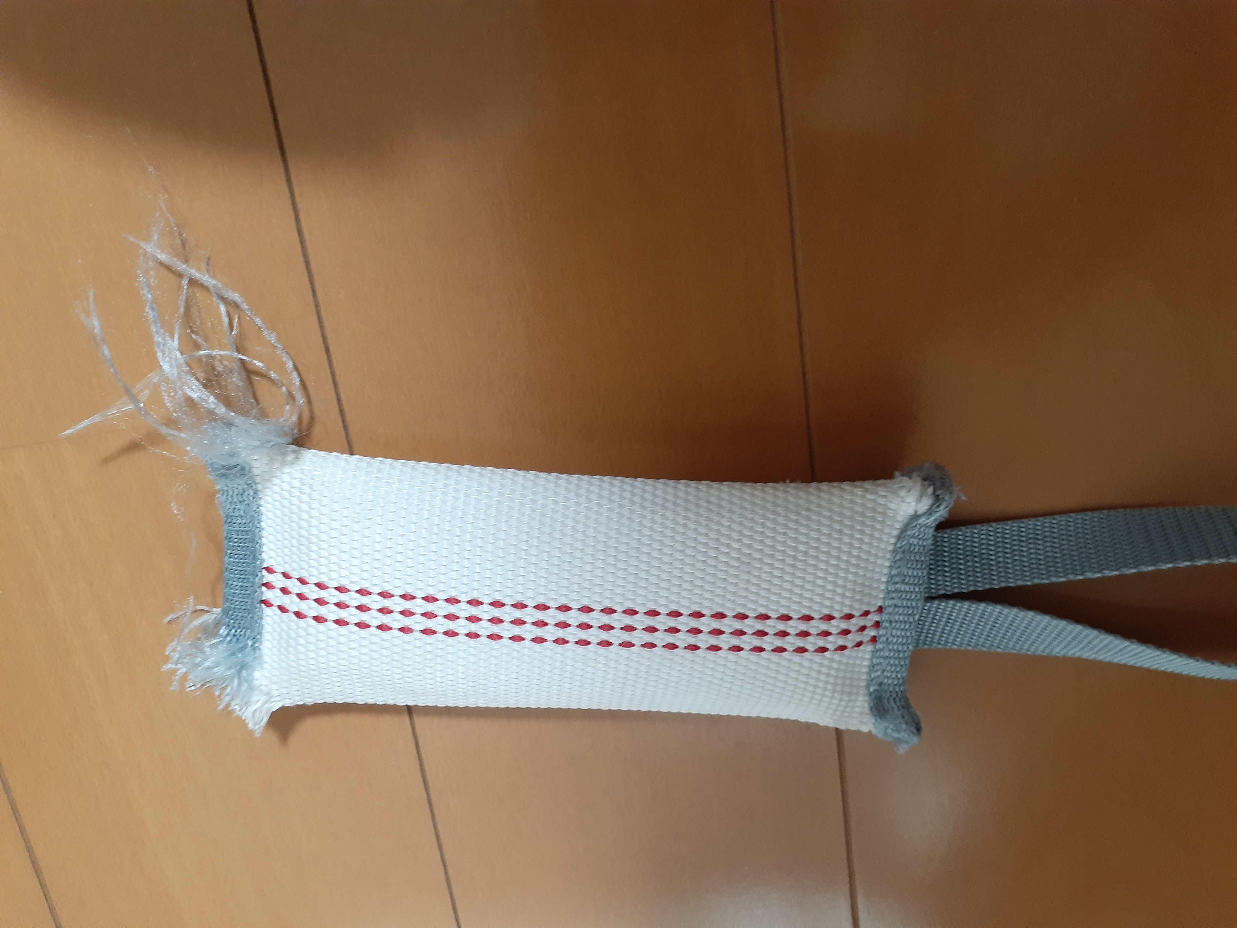 かじるおもちゃどうしてもボロボロになってしまいやすいので、消防ホースの丈夫な素材に魅力を感じ購入しました。 実物は想像していた通り見るからにしっかりしていて、硬すぎない素材をパキパキと鳴らしながら噛むことができてわんちゃんも楽しいようです。