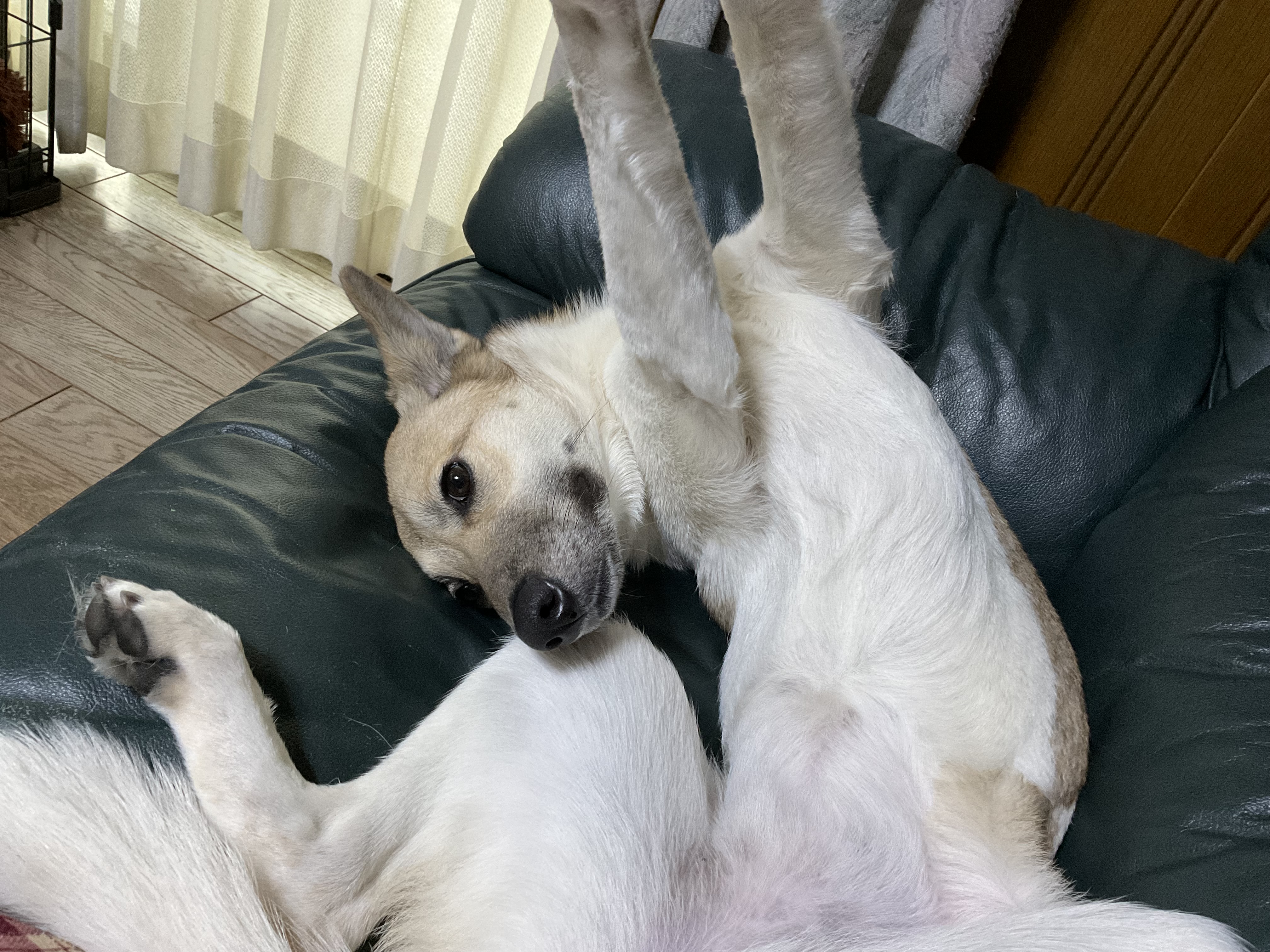 すぐにボロボロにしてしまうかと思ったけどさすが消防ホース! 同じ場所をガジガジするので多少の穴開きはあるものの今までの玩具に比べたら長持ちします。たまになるパキパキ音も楽しくなるようです