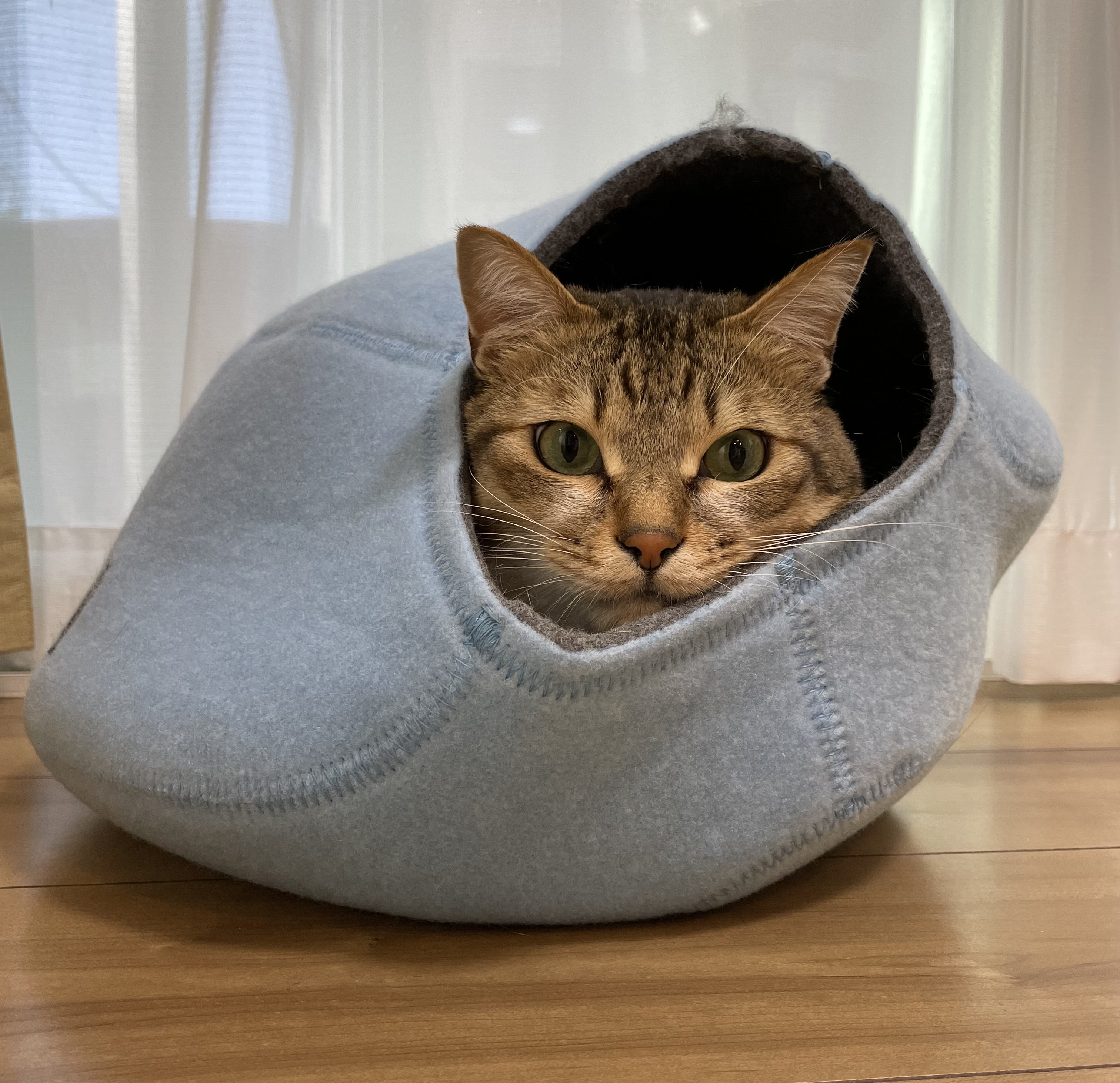 しっかりとしたフェルト生地で出来ていて、中で猫がガリガリしても大丈夫でした