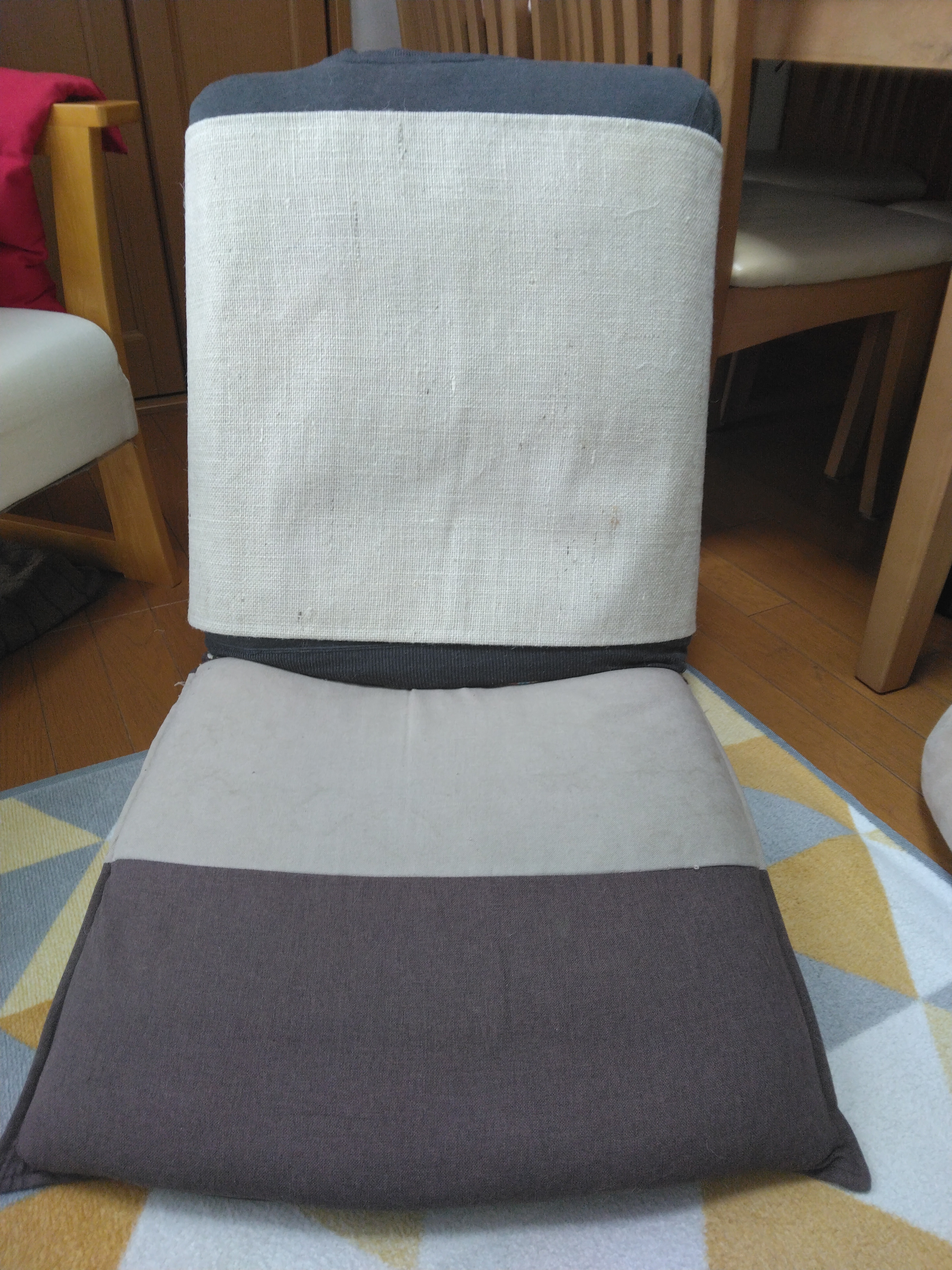 ダンボールの爪研ぎは、クズが出るのと、うちの子はあまり好きではないようで、もっぱら、こちらの商品がお気に入りです! 座椅子で爪研ぎするので、何か良い商品はないかと思案していましたが、ゴムを縫い付けて、こんな感じで使用したら、座椅子がボロボロになることもなく、愛猫も元気にバリバリと爪研ぎしています(笑)