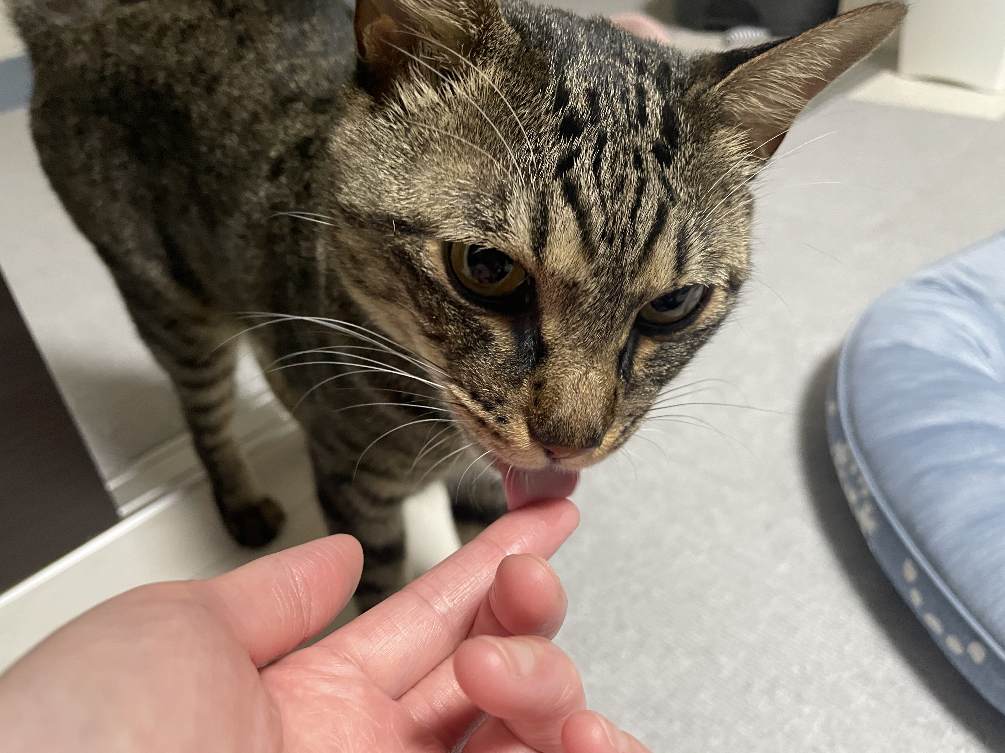 口の臭いが気になったのでデンタルケアをしたいと思いつつ歯磨きは無理..と諦めてたところ 指につけてもいいし、フードにつけてもいいというポイントに惹かれて始めました。 舐めるかどうか心配でしたが、嗜好性が高いのか好んで舐めてます。 口に直接はまだハードルが高いですが、効果はこれからかなと続けてみようと思ってます。