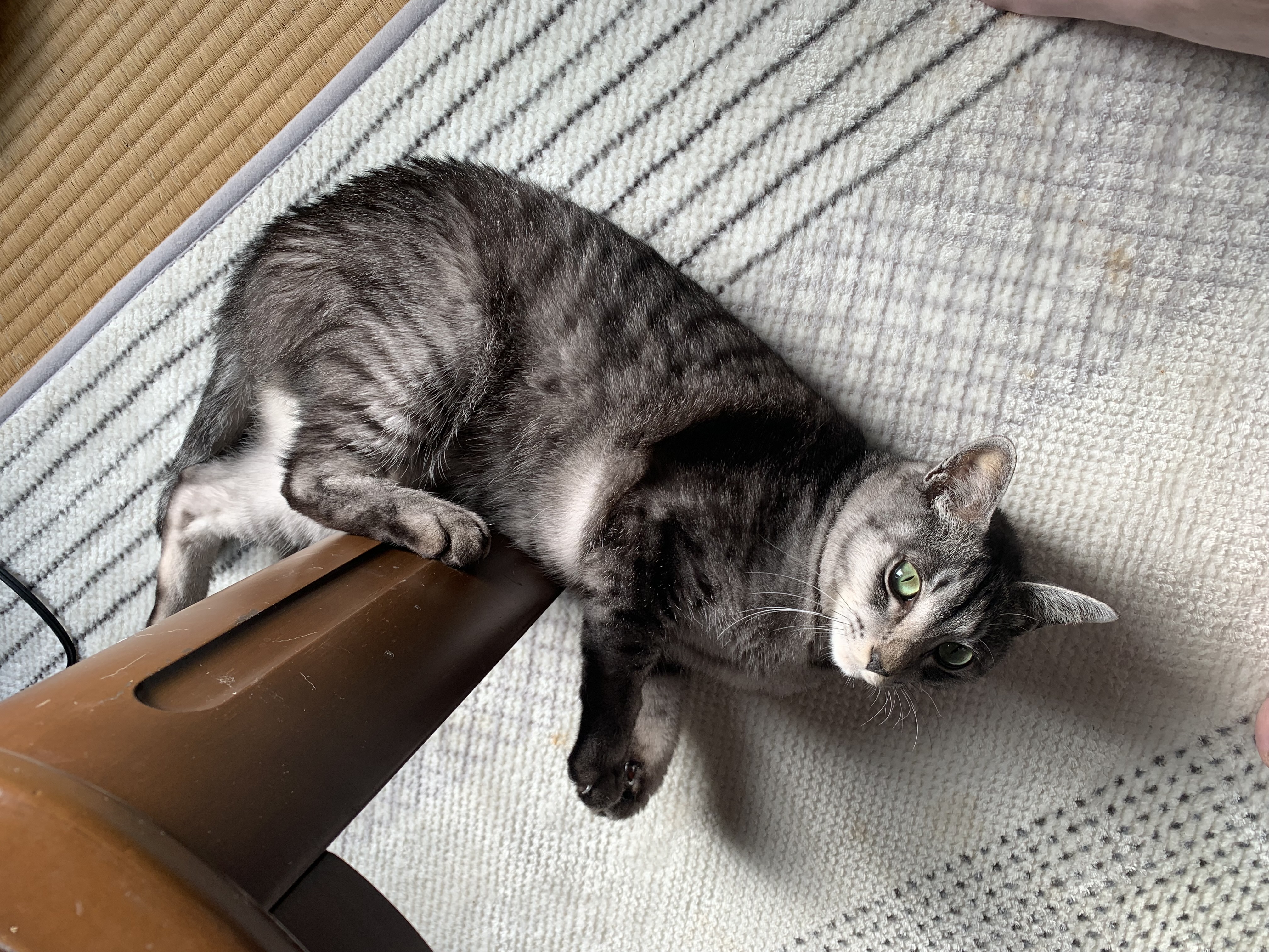 写真のタイトルは「我が家のイケメン枠」で、 ペットのお名前は「わらび ちゃん」、この猫の種類は、サバトラ(灰&黒)だそうです。