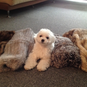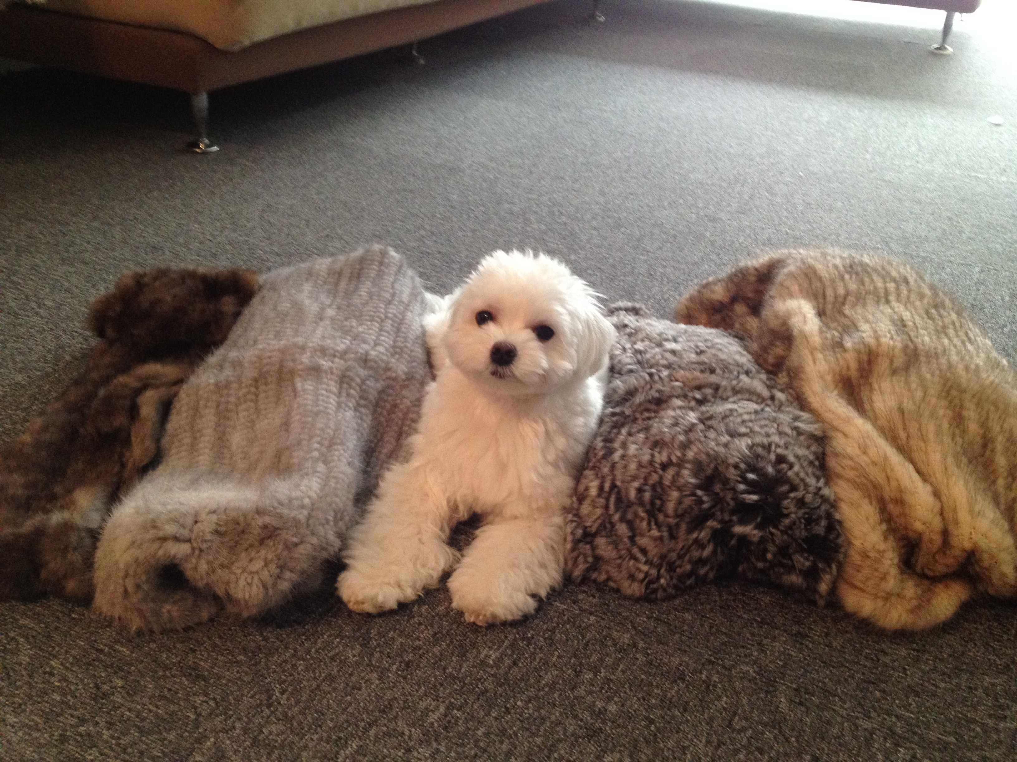 写真のタイトルは「毛自慢」で、 ペットのお名前は「ココロ ちゃん」、この犬の種類は、マルチーズだそうです。