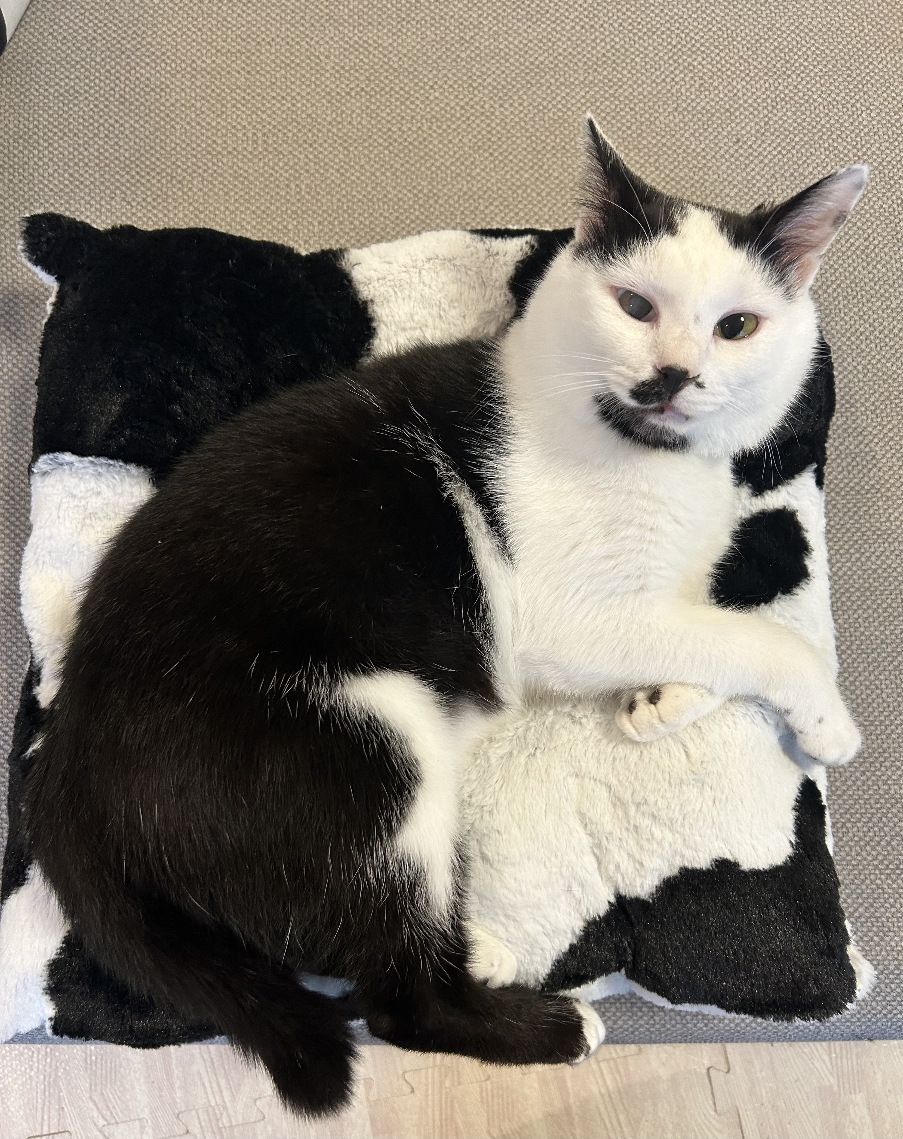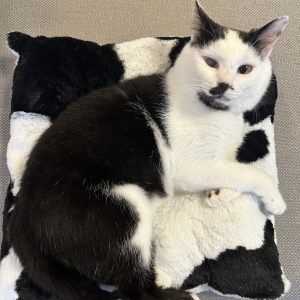 写真のタイトルは「どこにいるかわかるかにゃ」で、 ペットのお名前は「ゆき丸 ちゃん」、この猫の種類は、白黒猫(白&黒)だそうです。