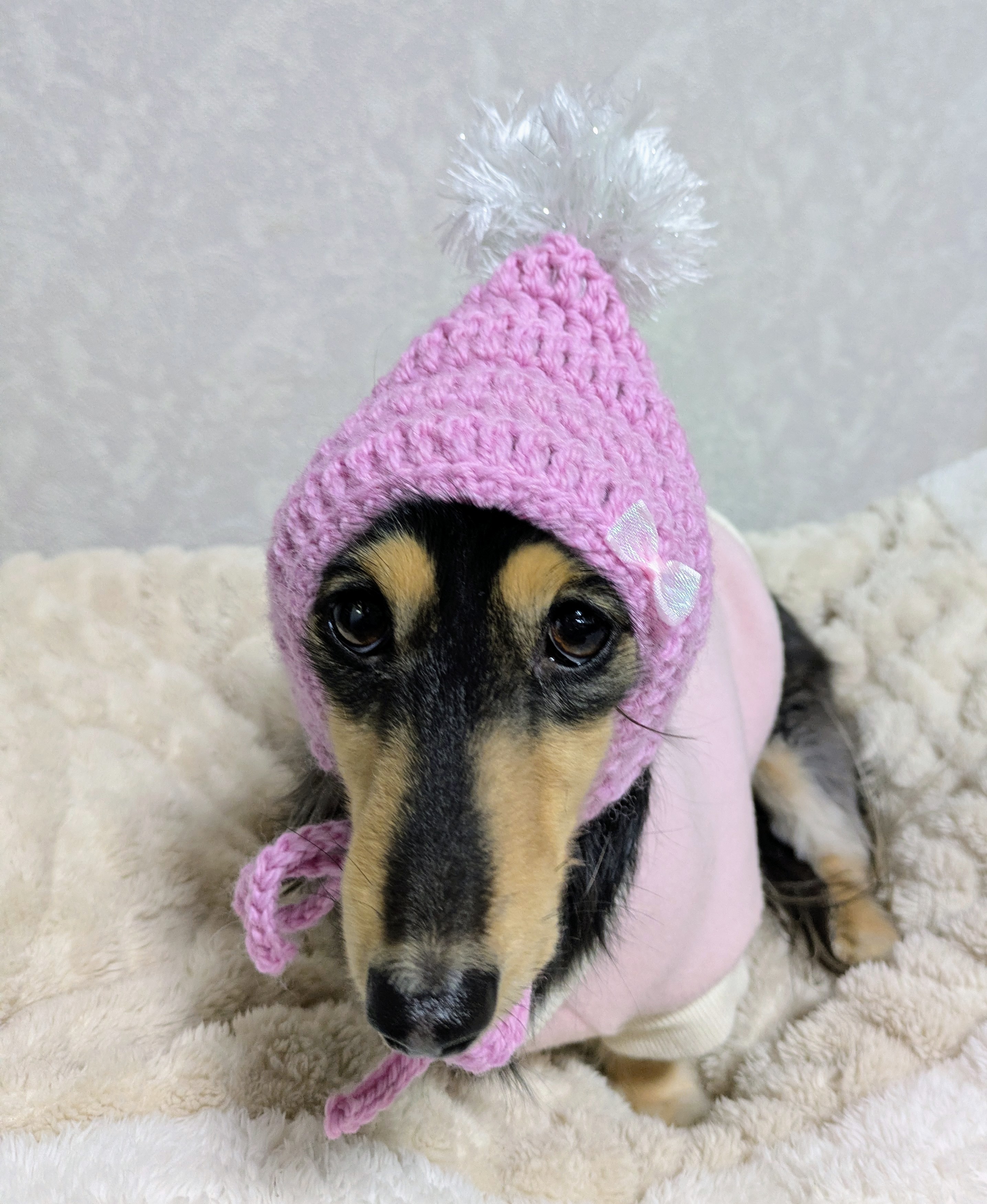 写真のタイトルは「おニューの帽子♥」で、 ペットのお名前は「あんず ちゃん」、この犬の種類は、カニヘンダックスフンドだそうです。