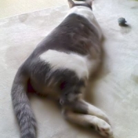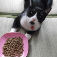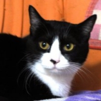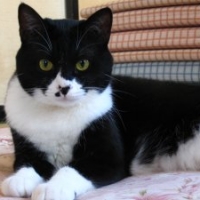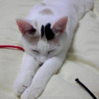 日本猫で白色、黒色の模様がある。白と黒のブチ模様の大きさはさまざまである。
