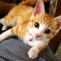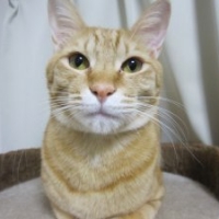 日本猫でトラのような縞模様を持つネコである。全身が黄色で茶色のトラ模様がある。全身がトラ模様な猫と、白い毛の部分が...