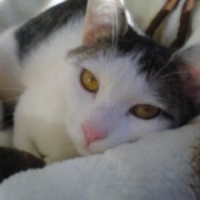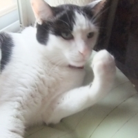 日本猫で白色、黒色の模様がある。白と黒のブチ模様の大きさはさまざまである。