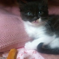日本猫で白色、黒色の模様がある。白と黒のブチ模様の大きさはさまざまである。