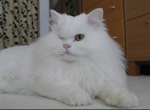 白猫(しろねこ)とは、全身の大半が白い毛で覆われている猫の総称である。人間側から抱かれがちなその性格についての印象としては、『神経質』や『怒りっぽい』あるいは『身体を滅多に触らせない』などといったものが挙げられる。 繊細な性格を持つ個体が多いとの調査結果がある。一説によると、天敵からの捕捉を惹起し易い目立つ毛色を有していながら自然界を生き延びてくることができたのは、すなわち『気が強い』という性質を有しているからであると考えられ、それが人間を容易には寄せ付けようとしないその繊細さに繋がっているのであるという。遺伝学に基づいたうえで見るならば、この地球上には2種類の白猫が存在する。まず1つは色素を全く持たずに生まれる突然変異としての―すなわちアルビノとしての白猫、もう1つはそうでない白猫である。後者の白猫としての誕生を決定付けるのは、『白色遺伝子』と呼ばれる優性遺伝子、あるいは『白斑遺伝子』と呼ばれる遺伝子である。 白色遺伝子と白斑遺伝子は全く別個の遺伝子であるが、白毛を生成する作用を持つという点では共通している。