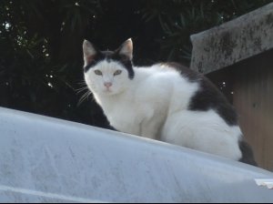 日本猫で白色、黒色の模様がある。白と黒のブチ模様の大きさはさまざまである。