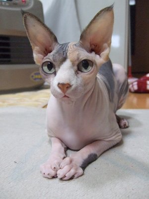 無毛のネコとして知られるが、まったくの無毛ではなく、極めて短い産毛に覆われている。また、まばらに毛が生えていることがある。ヒゲはない。かつては「カナディアン・ヘアレス」とも呼ばれていた。平均体重は 3.5-7 kg。気質は陽気で活発であり、また人なつっこく社交的である。被毛に覆われていないため、暑さにも寒さにも弱く、室内で飼う必要がある。また皮脂を吸い取る被毛がないので皮膚が脂っぽくなりやすく、飼い主は毎日皮脂をふき取ってやる必要がある。ほかの猫種では被毛に色のパターンが現れるが、この猫種では皮膚に現れる。すべての色のパターンが認められる。