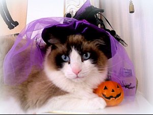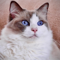 大型の品種の一つで、成猫は体重10kg以上になる個体もある。ラグドール"Ragdoll"は「ぬいぐるみ」の意味で、その名のとおり性格は穏やかで人懐こい。ぬいぐるみ猫という名にふさわしく、明るく従順で、友好的な性格である。基本的に長毛種であり、毛質はとても滑らか。瞳はブルーである。毛色は白がベースとなっており白地に柄が入る形になるが、生まれたときは真っ白であり、成長していくにつれて段々と模様が浮き出てくる。毛の模様は、ポイント(シャム猫模様)とバイカラー(八割れ)。毛色はブルー(灰色)とシール(黒色)が基本。完全に成長するまでには約4年を要する。また、あまり鳴かない種類としても知られている。 大型種(現在中型種)だが、10kg前後まで成長するのは稀である。 現在はメスで4.0kg~6.0kg、オスで4.5kg~7kg位が標準である。諸説あるが、共通事項としては1960年ごろに、アメリカ合衆国カリフォルニア州のアン・ベイカー婦人により誕生し、白いペルシャをベースとしている。比較的新しい種類の猫である。
