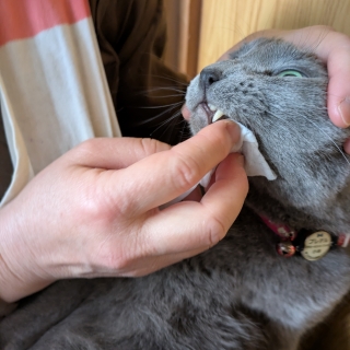 この時がこの子にとって初めてのケアでした。てっきり動いてできないと思いましたがお利口で助かりました。ただ、ぎこちないケアだったため嫌がってしまわないか心配です。ケアが続けられるよういっしょに頑張ります