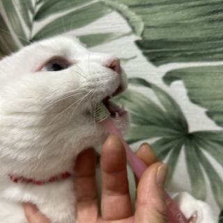 愛猫の歯肉炎、口内炎の改善に!猫用は広がりが分かりやすい着色タイプ。