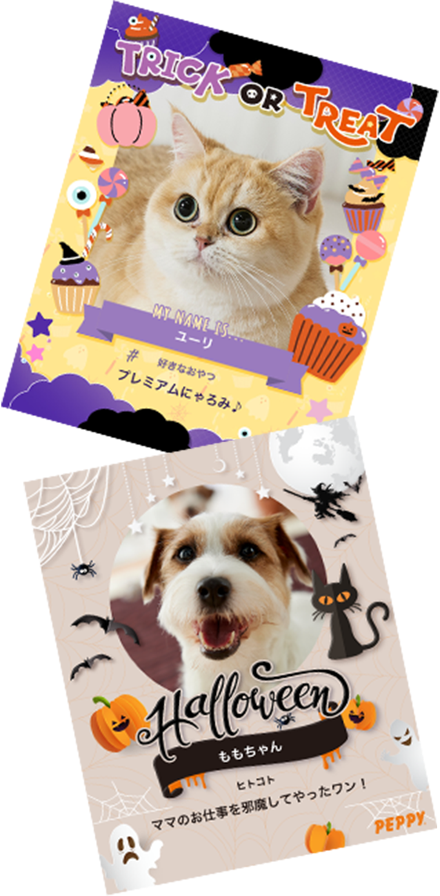 【うちの子ハロウィンカード】犬猫の写真を入れて、無料&3分で作れます♪